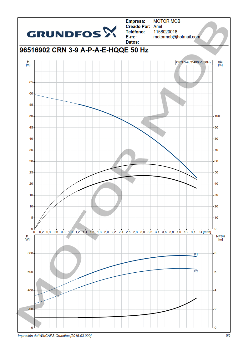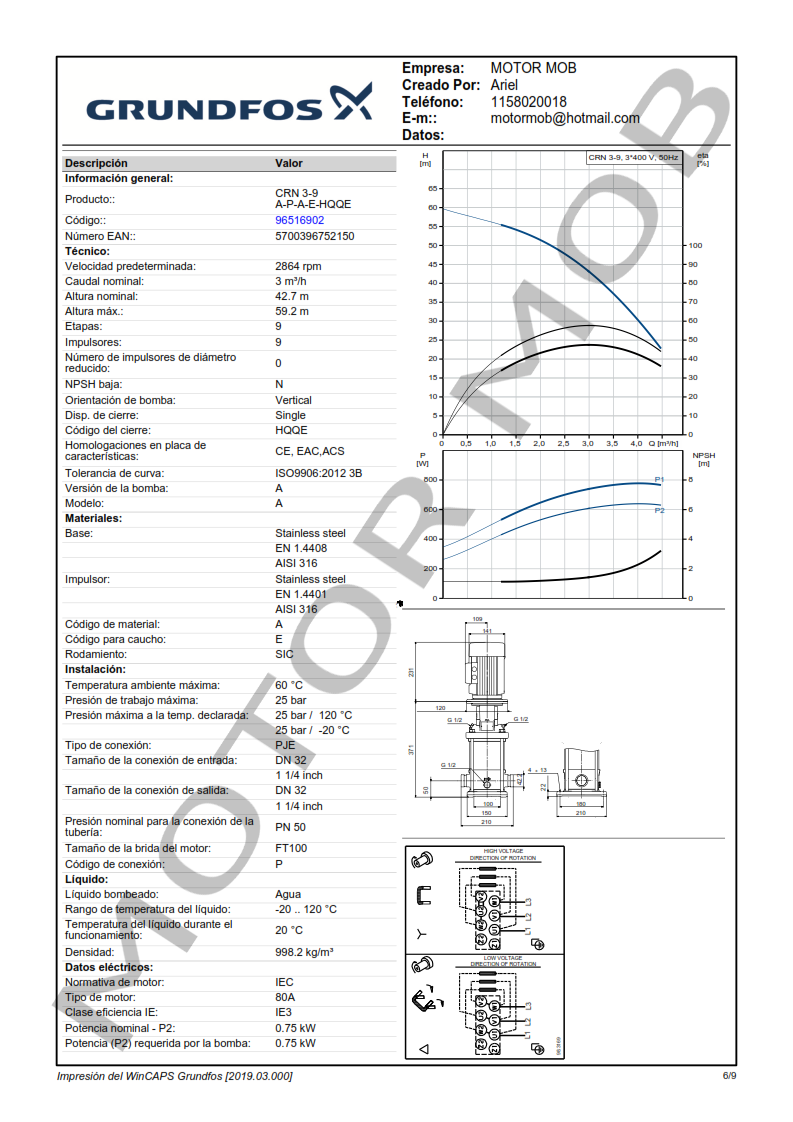 BOMBA MULTICELULAR VERTICAL – GRUNDFOS – CRN 3-9 – 1 HP – TRIFASICA – ARTICULO 96516902
