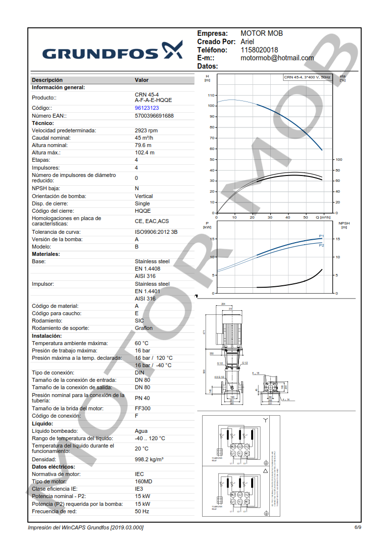 BOMBA MULTICELULAR VERTICAL – GRUNDFOS – CRN 45-4 – 20 HP – TRIFASICA – ARTICULO 96123123