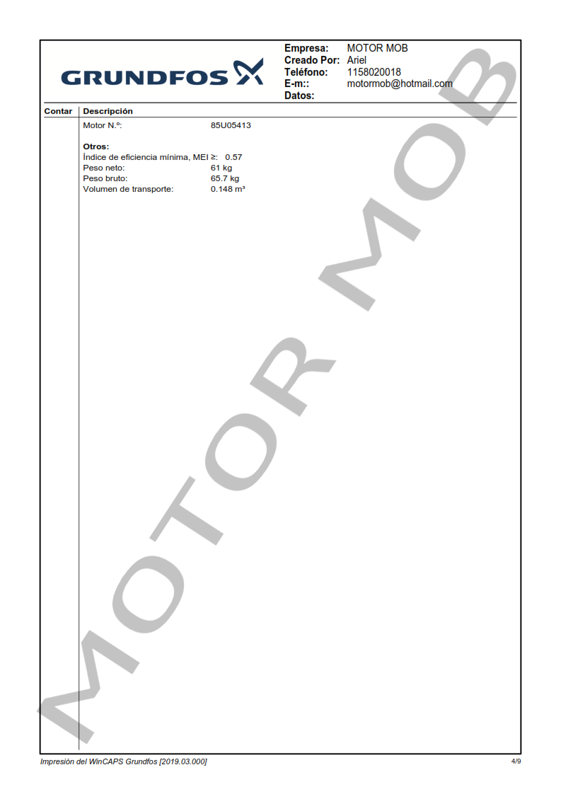 La bomba está equipada con un motor asíncrono de 3 fases, refrigerado por ventilador y montado sobre soportes.