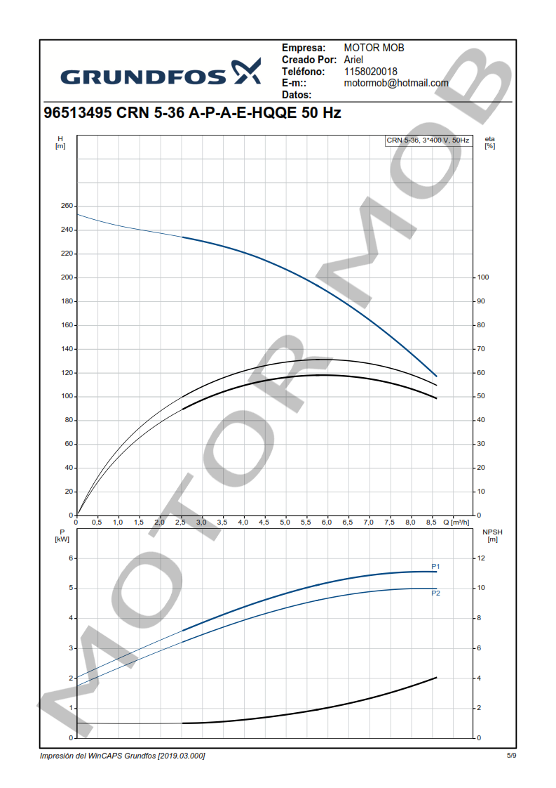 BOMBA MULTICELULAR VERTICAL – GRUNDFOS – CRN 5-36 – 7.5 HP – TRIFASICA – ARTICULO 96513495