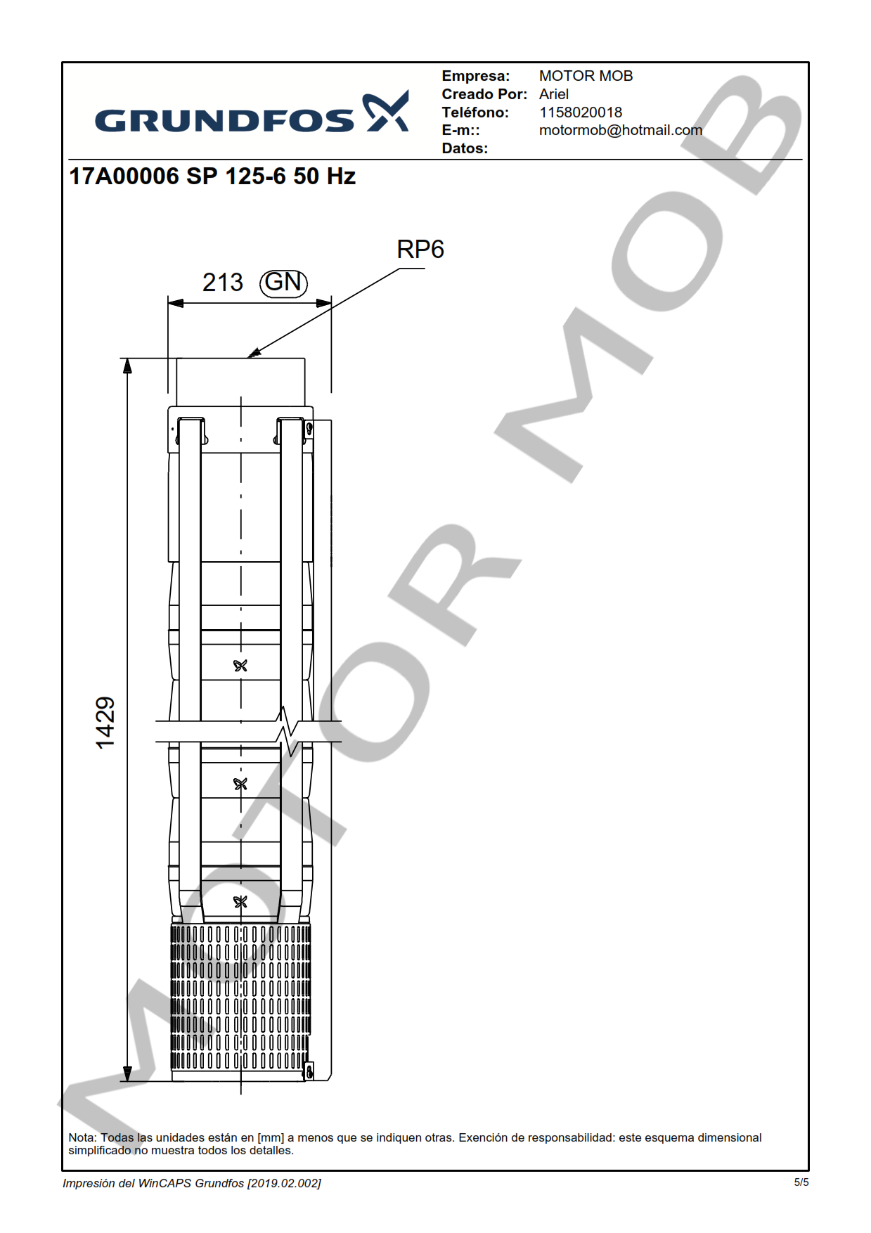 BOMBA SUMERGIBLE PARA POZO DE 10″ – GRUNDFOS – SP 125-6 – 84 HP – ARTICULO 17A00006