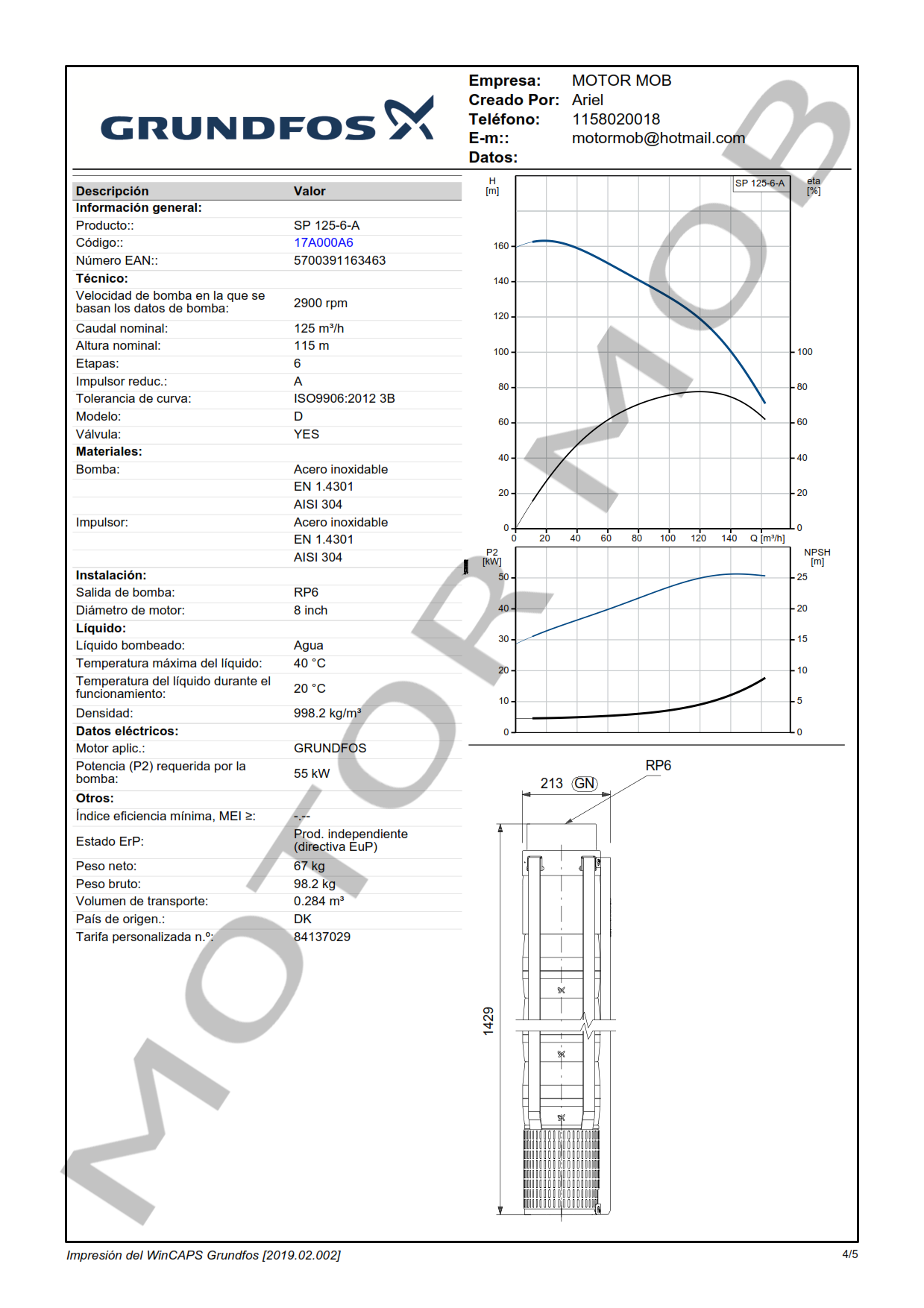 BOMBA SUMERGIBLE PARA POZO DE 10″ – GRUNDFOS – SP 125-6-A – 75 HP – ARTICULO 17A000A6
