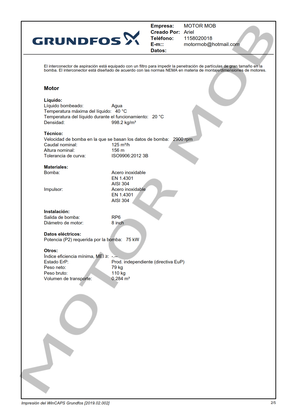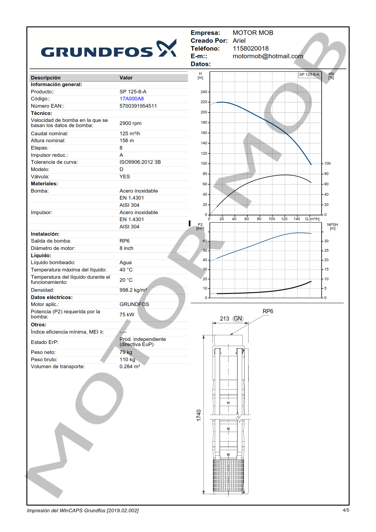 BOMBA SUMERGIBLE PARA POZO DE 10″ – GRUNDFOS – SP 125-8-A – 100 HP – ARTICULO 17A000A8