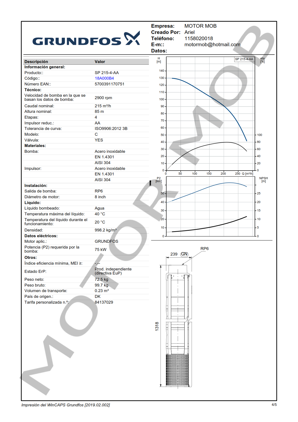 BOMBA SUMERGIBLE PARA POZO DE 10″ – GRUNDFOS – SP 215-4-AA – 100 HP – ARTICULO 18A000B4