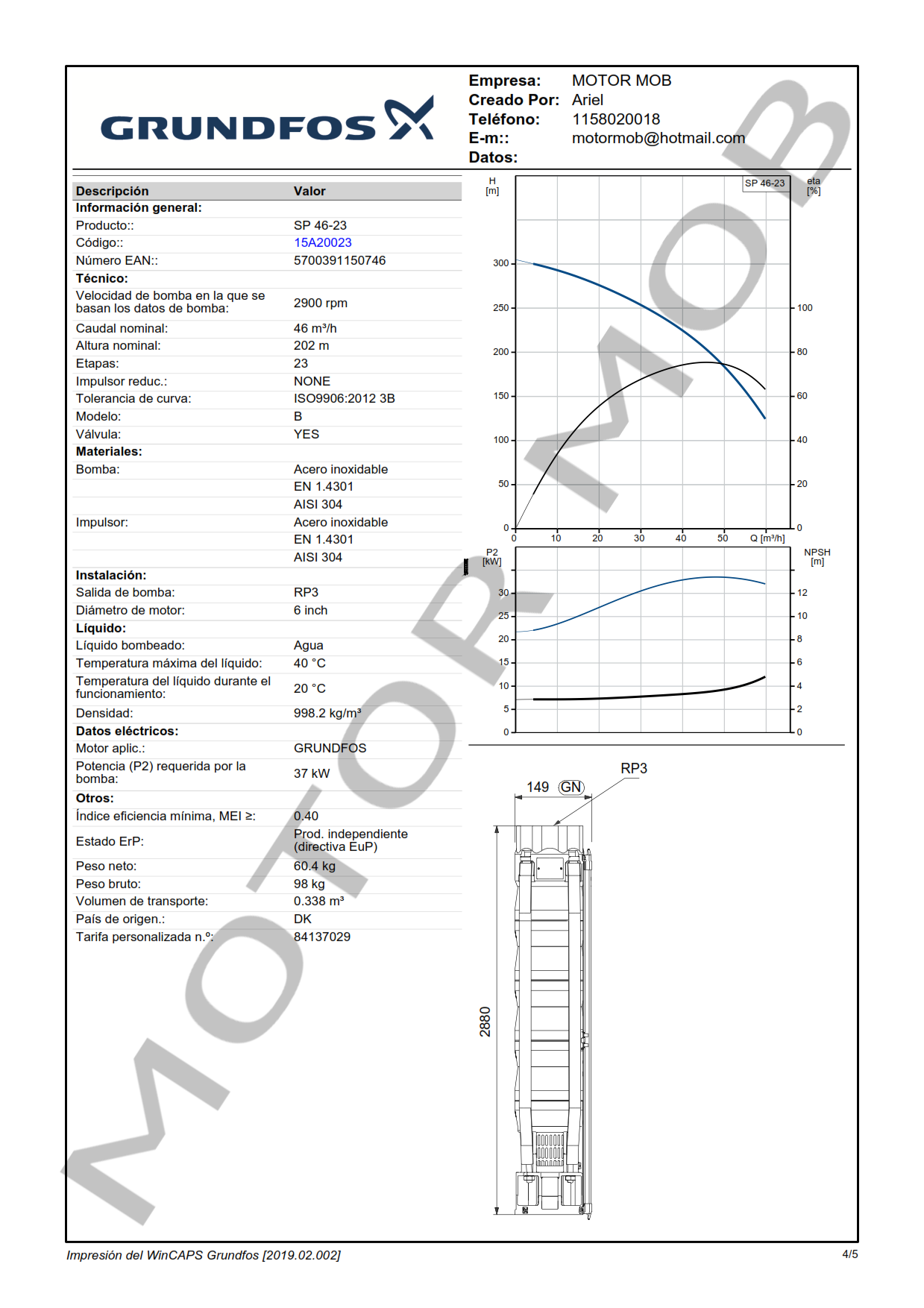 BOMBA SUMERGIBLE PARA POZO DE 3″ – GRUNDFOS – SP 46-23 – 50 HP – ARTICULO 15A20023