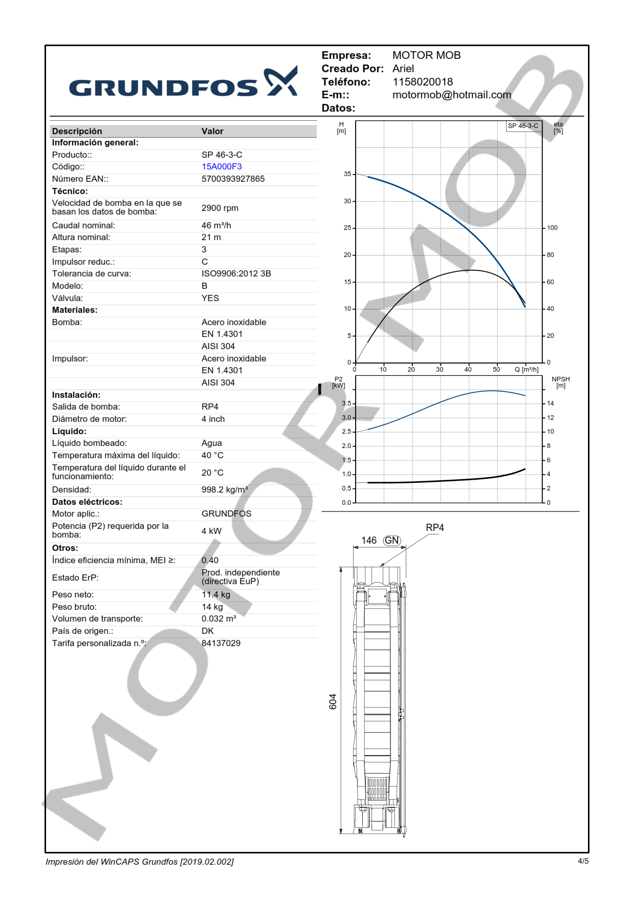 BOMBA SUMERGIBLE PARA POZO DE 4″ – GRUNDFOS – SP 46-3-C – 5 HP – ARTICULO 15A000F3