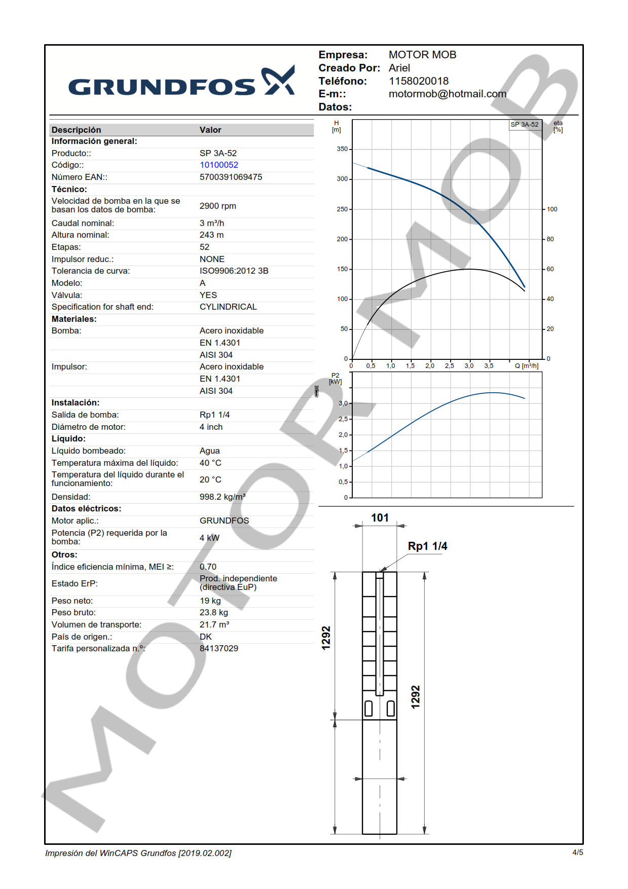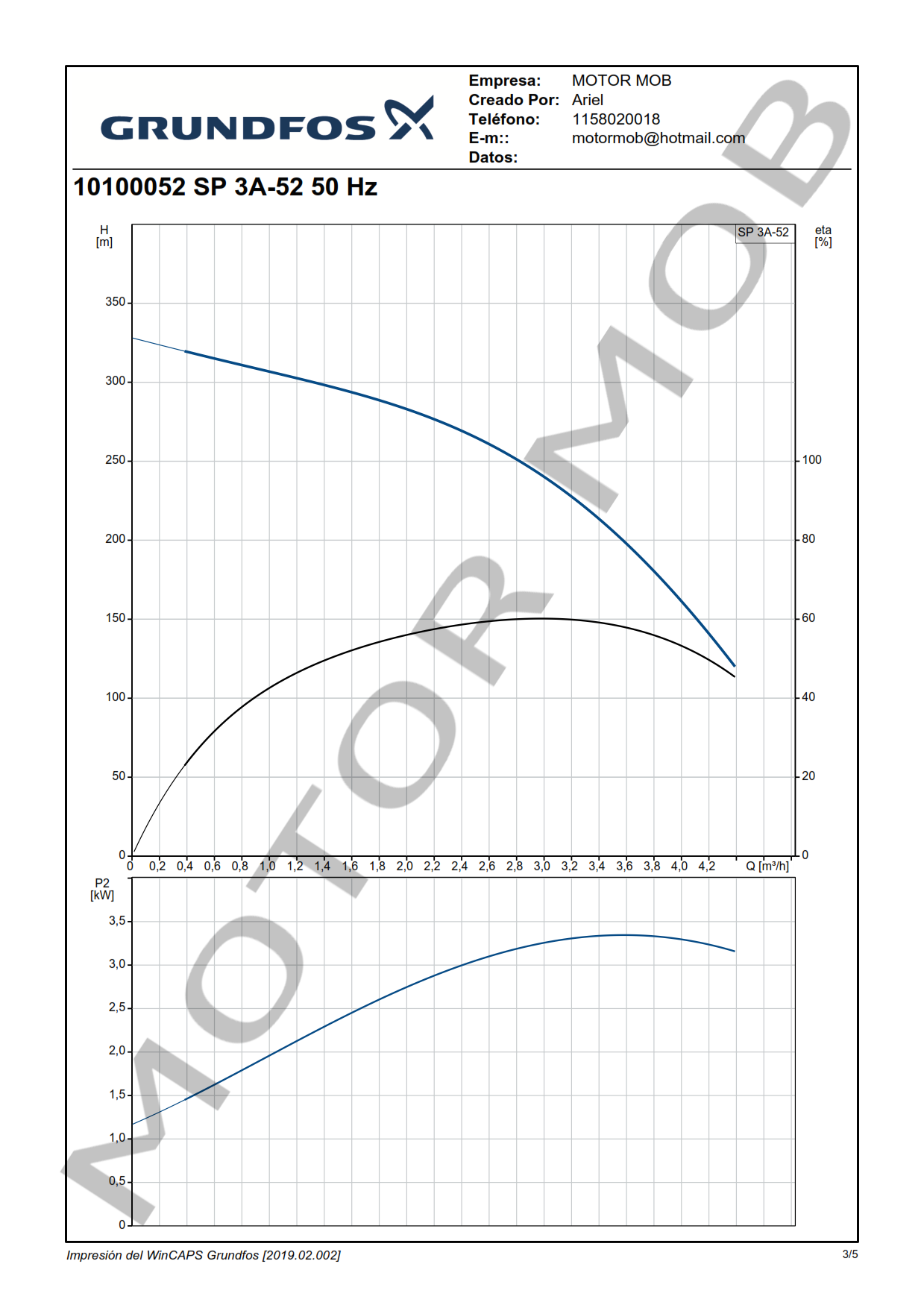 BOMBA SUMERGIBLE PARA POZO DE 4″ – GRUNDFOS – SP 3A-52 – 5 HP – ARTICULO 10100052