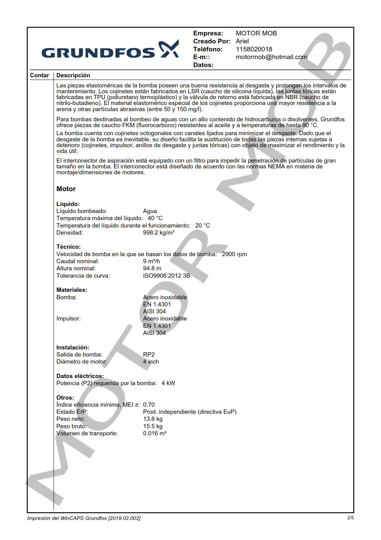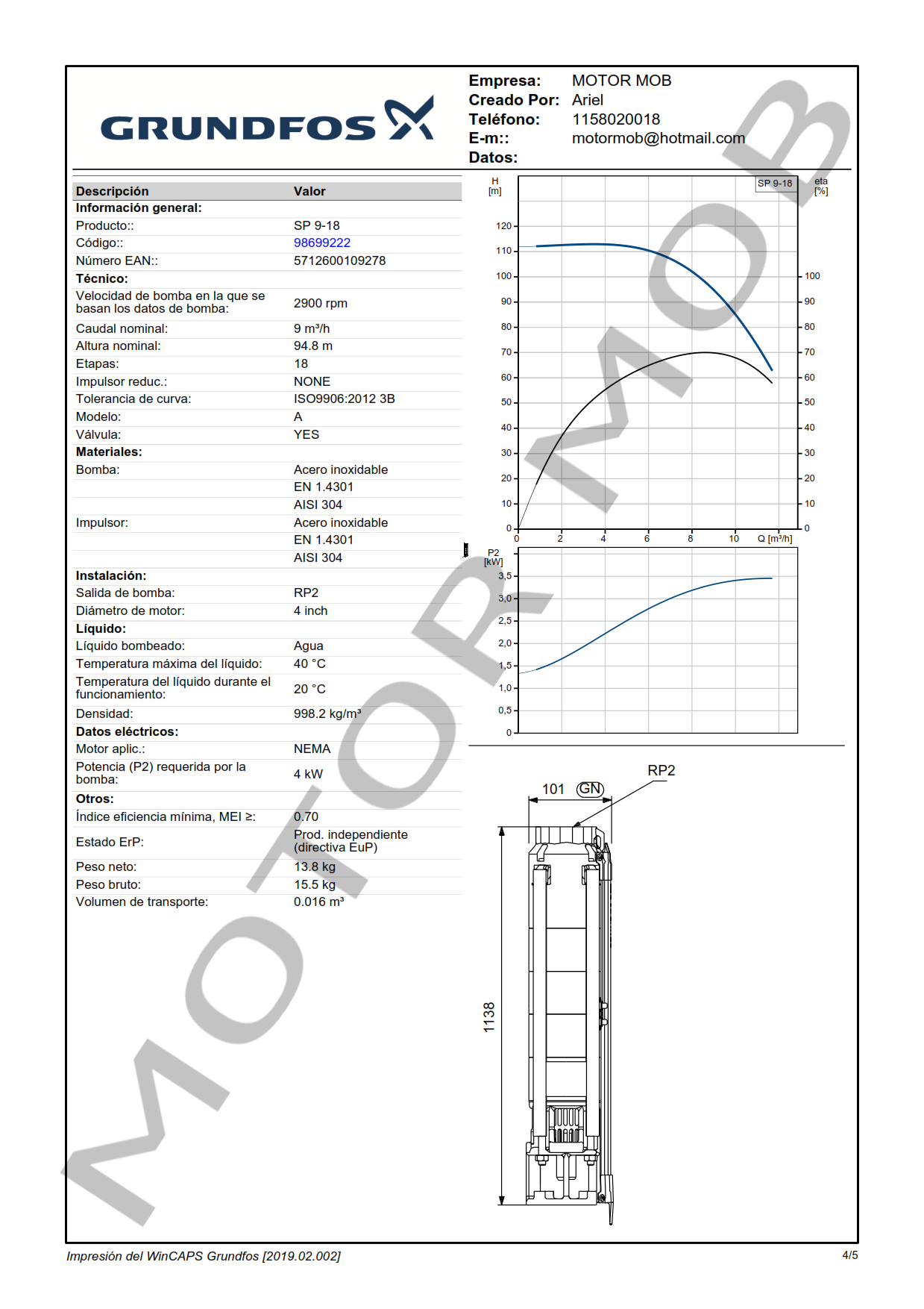 BOMBA SUMERGIBLE PARA POZO DE 4″ – GRUNDFOS – SP 9-18 – 5 HP – ARTICULO 98699222