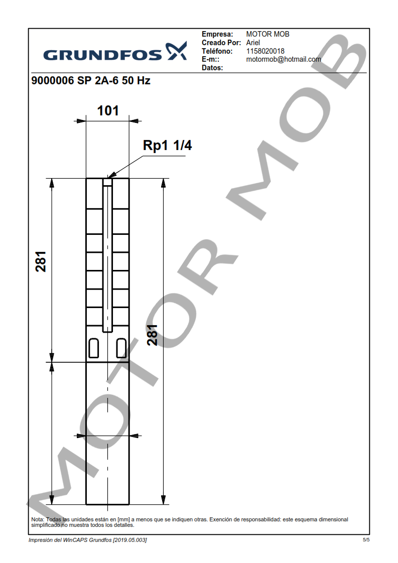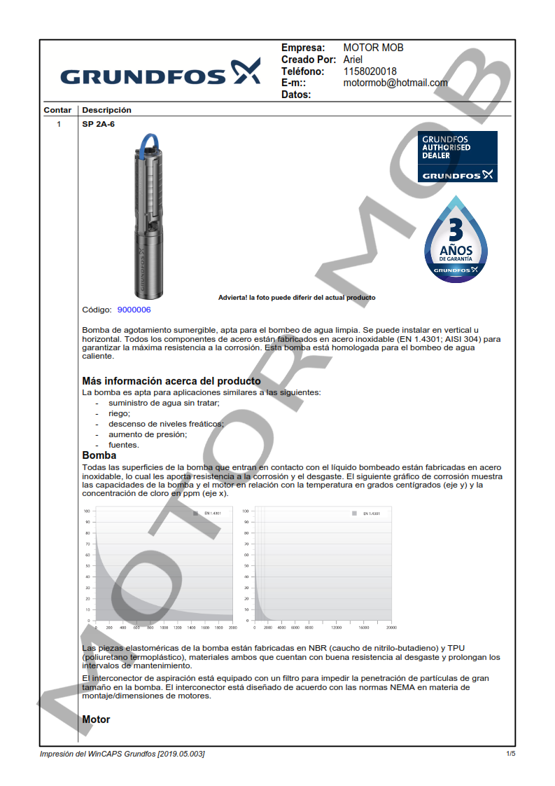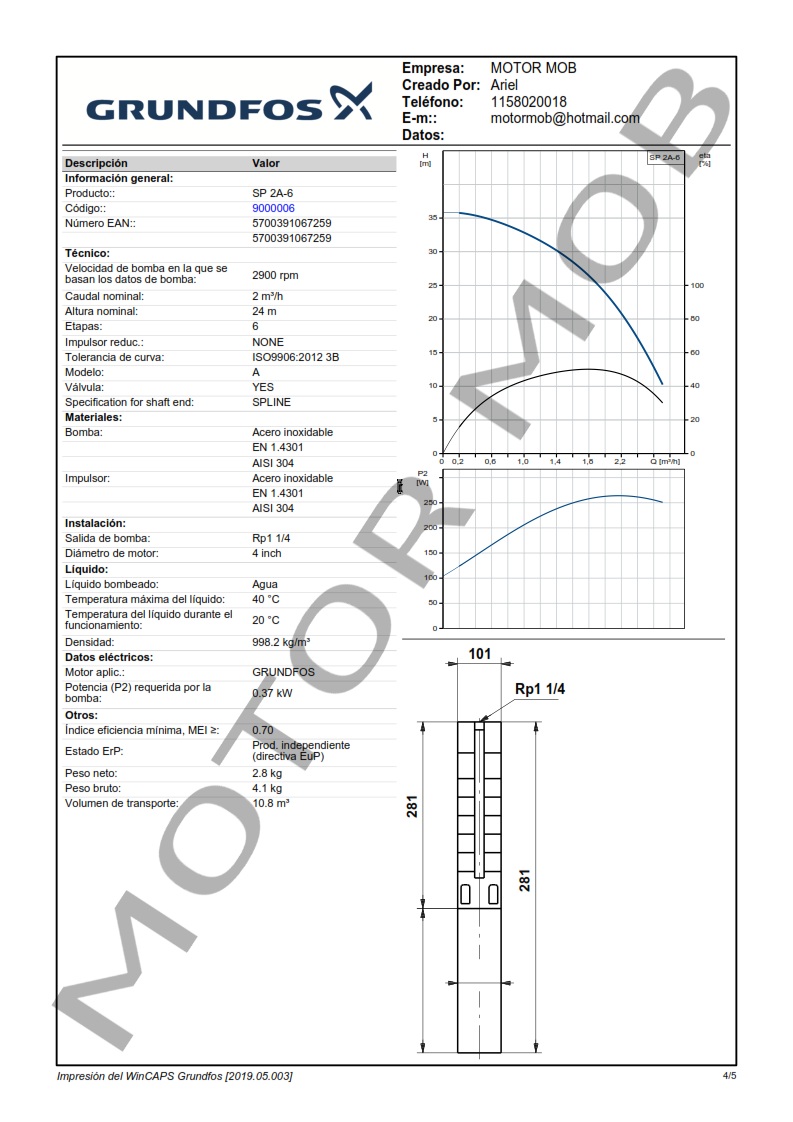 BOMBA SUMERGIBLE PARA POZO DE 4″ – GRUNDFOS – SP 2A-6 – 0.5 HP – ARTICULO 9000006