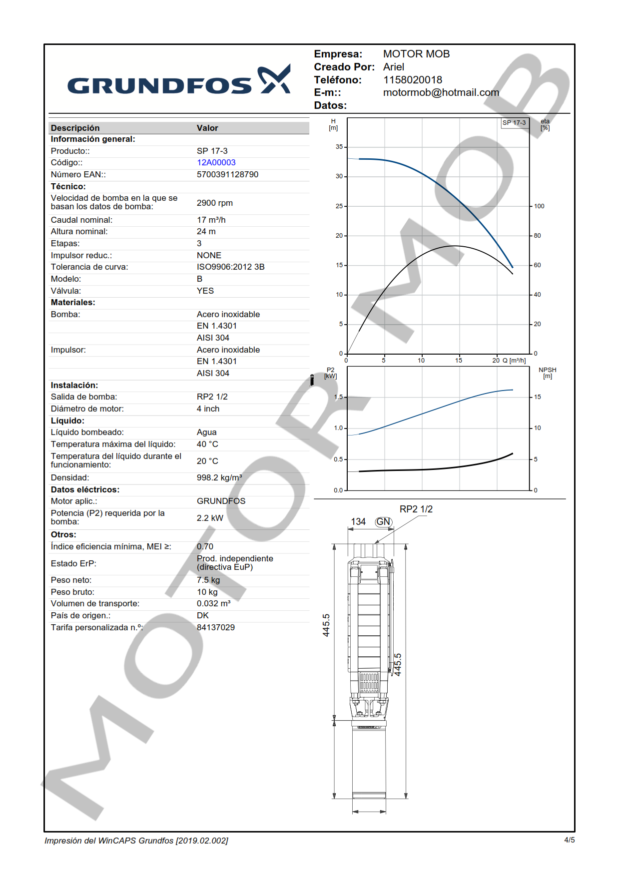 BOMBA SUMERGIBLE PARA POZO DE 6″ – GRUNDFOS – SP 17-3 – 3 HP – ARTICULO 12A00003