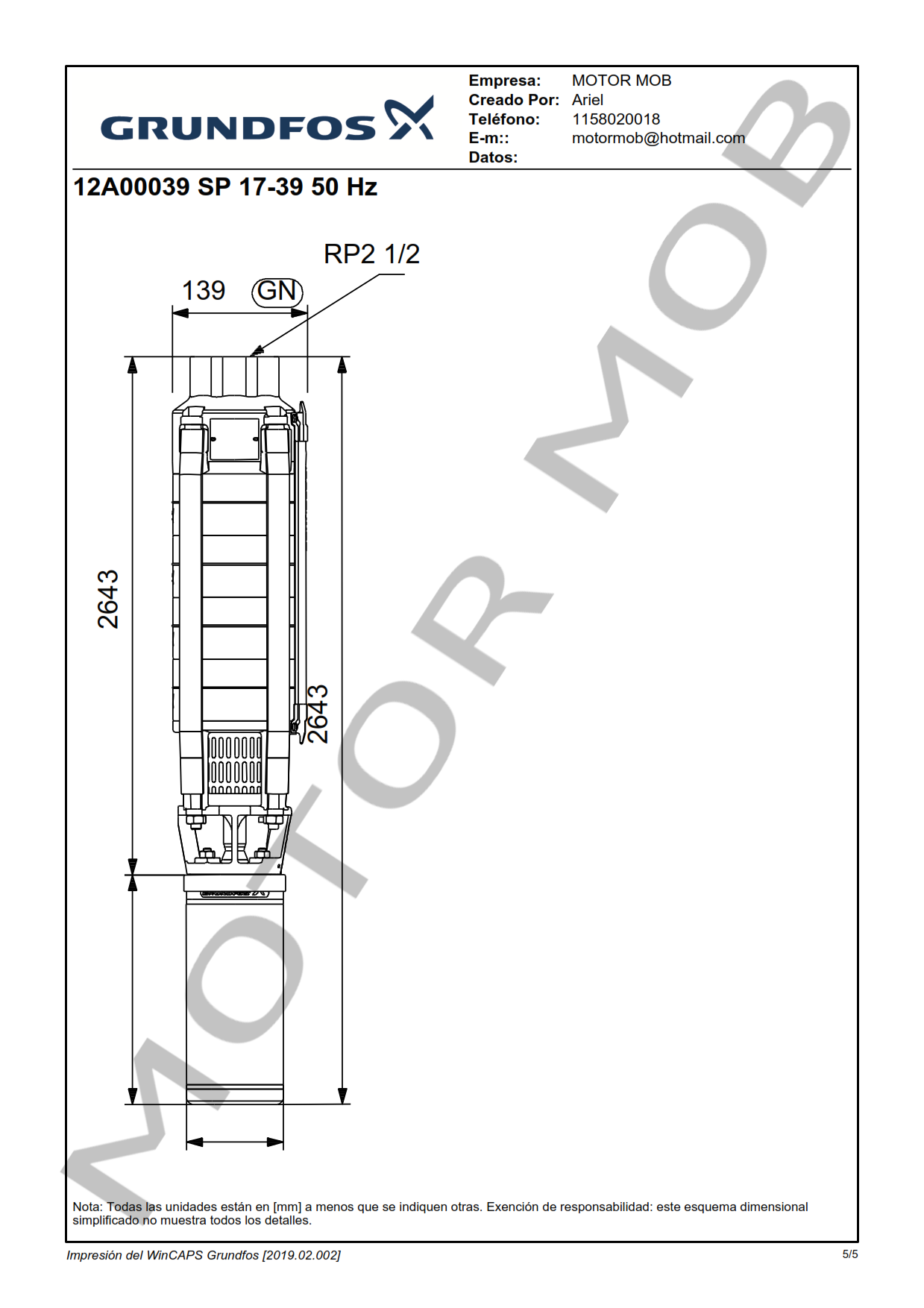 BOMBA SUMERGIBLE PARA POZO DE 6″ – GRUNDFOS – SP 17-39 – 30 HP – ARTICULO 12A00039