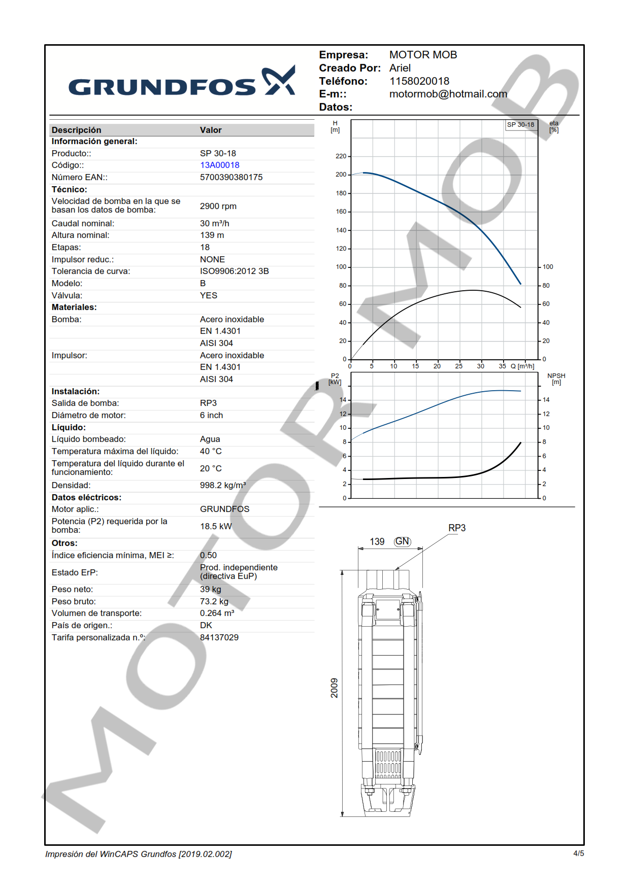 BOMBA SUMERGIBLE PARA POZO DE 6″ – GRUNDFOS – SP 30-18 – 25 HP – ARTICULO 13A00018
