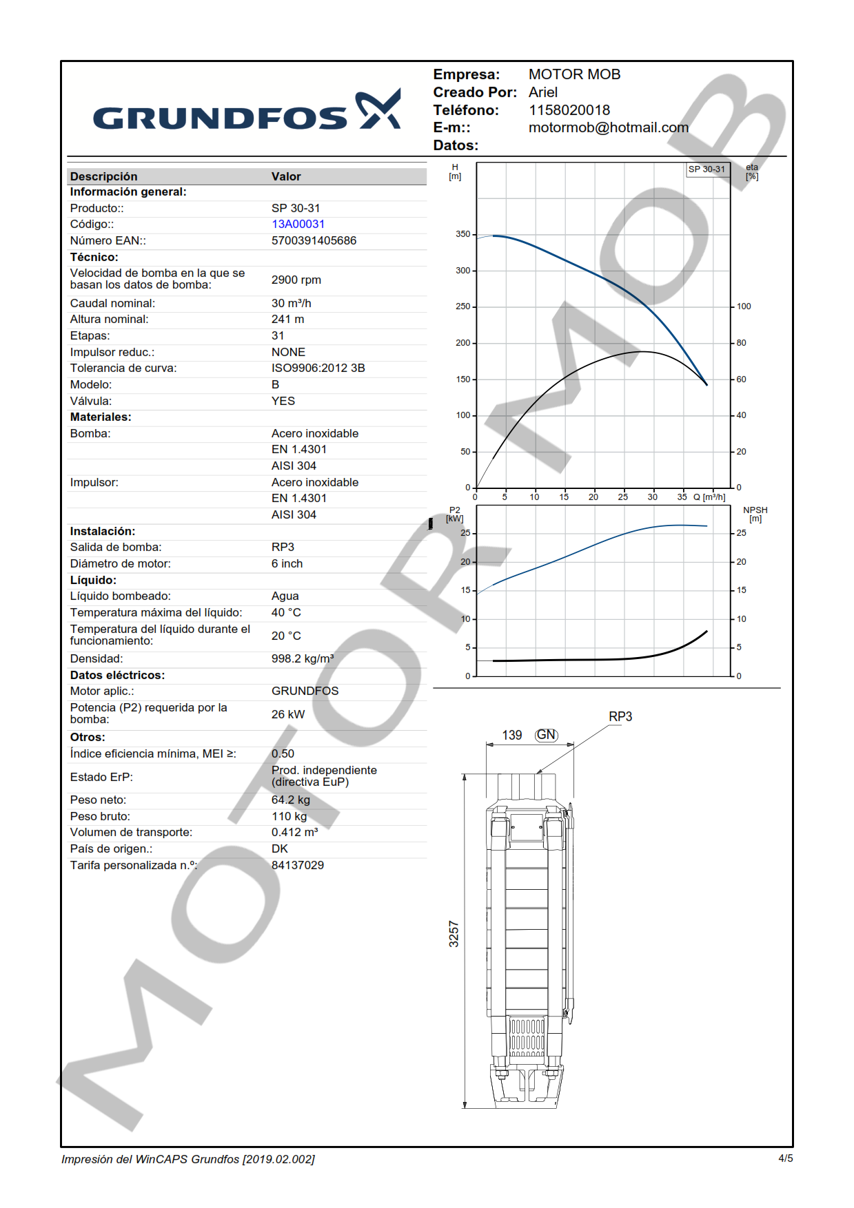 BOMBA SUMERGIBLE PARA POZO DE 6″ GRUNDFOS SP 30-31 35 HP ARTICULO 13A00031 – PRECIO