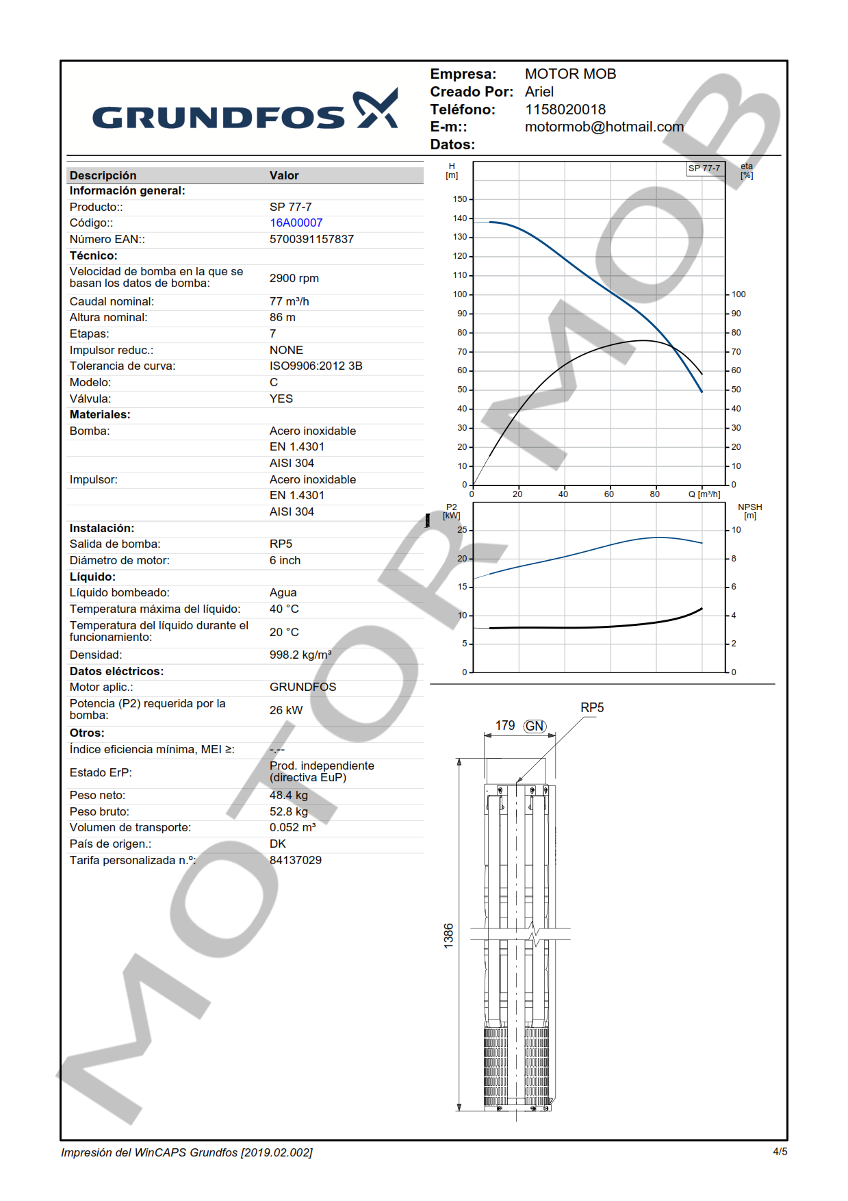 BOMBA SUMERGIBLE PARA POZO DE 8″ – GRUNDFOS – SP 77-7 – 35 HP – ARTICULO 16A00007