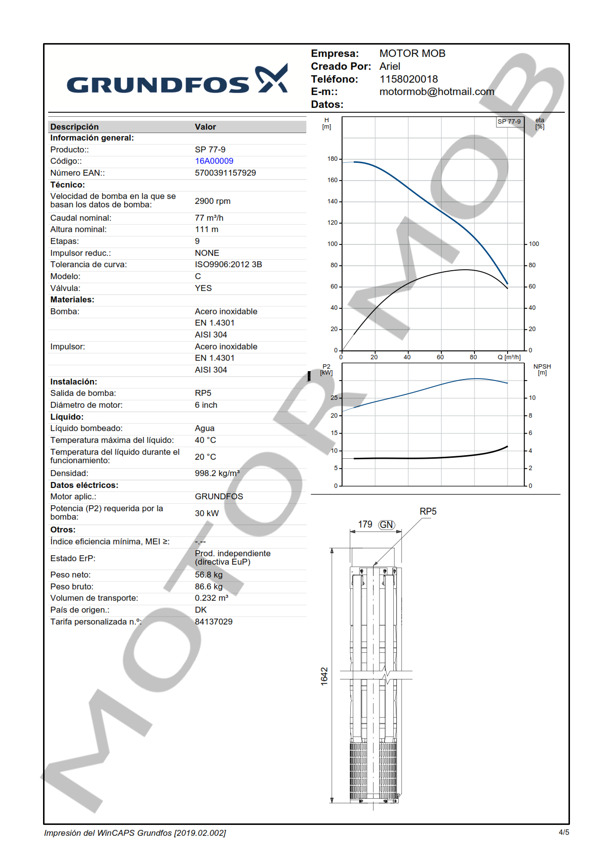 BOMBA SUMERGIBLE PARA POZO DE 8″ – GRUNDFOS – SP 95-9 – 50 HP – ARTICULO 1900009