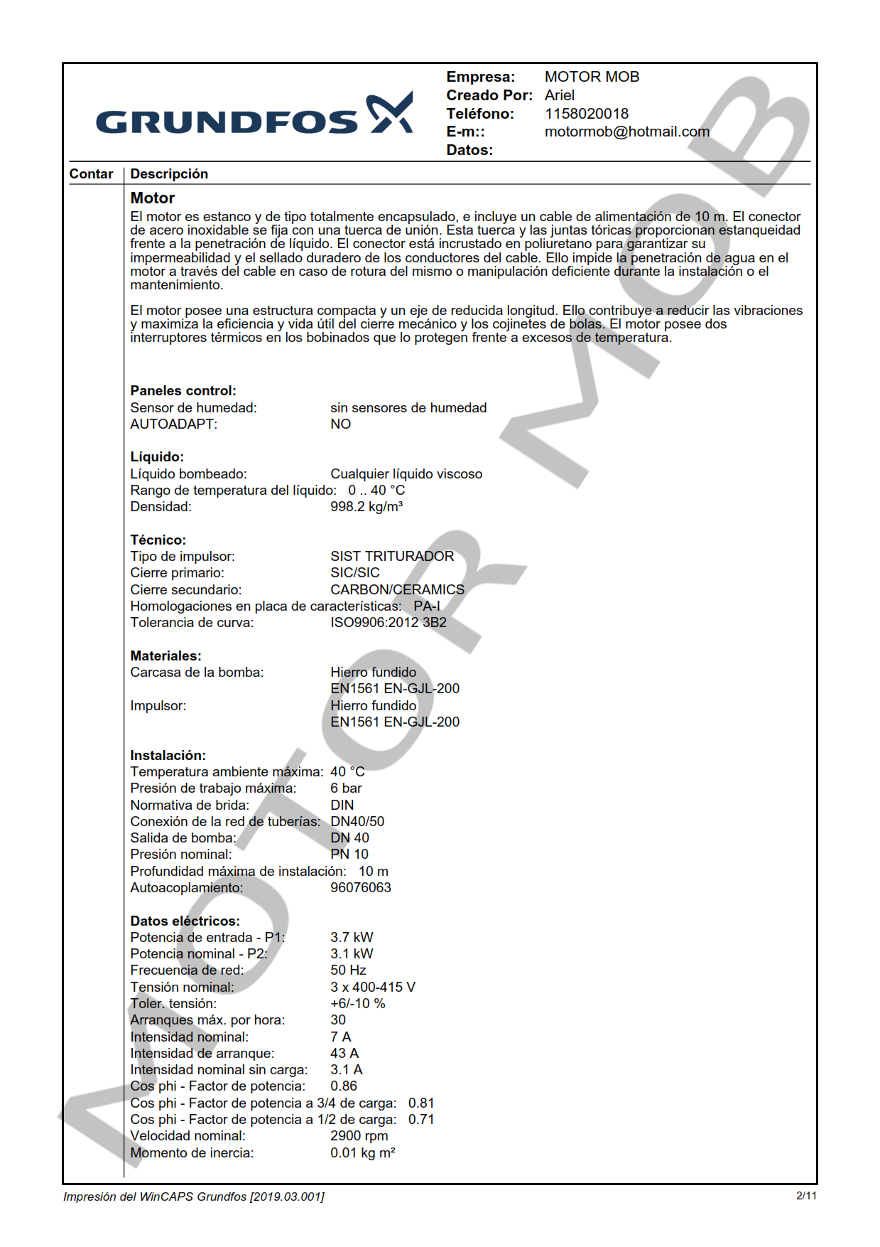 BOMBA TRITURADORA – GRUNDFOS – SEG 40.31.2.50B – 4.2 HP – TRIFASICA – ARTICULO 96075915