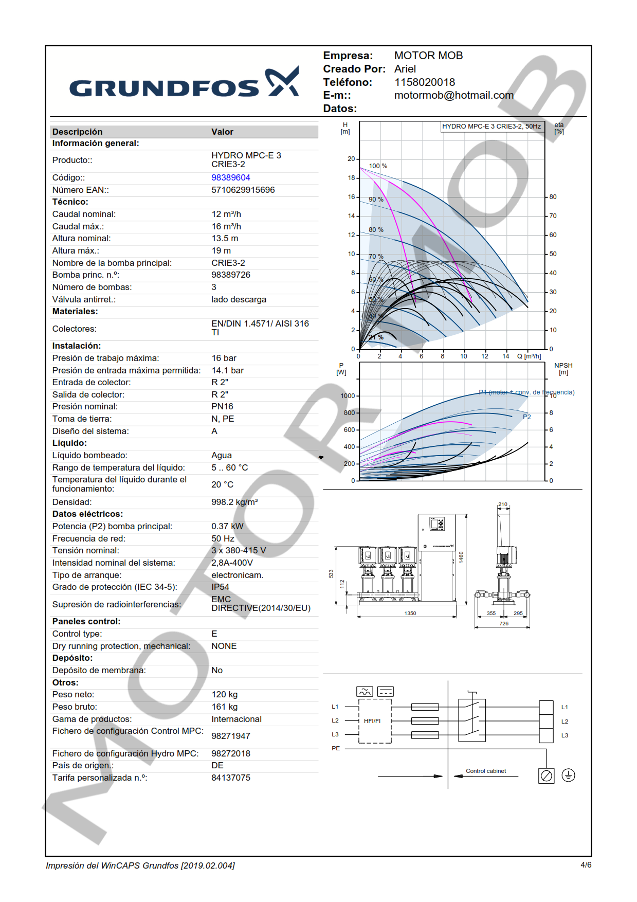 EQUIPO DE PRESURIZACIÓN VARIABLE DE 3 BOMBAS – GRUNDFOS – HYDRO MPC-E CRE 3-2 – 0.37 KW – TRIFASICO – ARTICULO 98389604