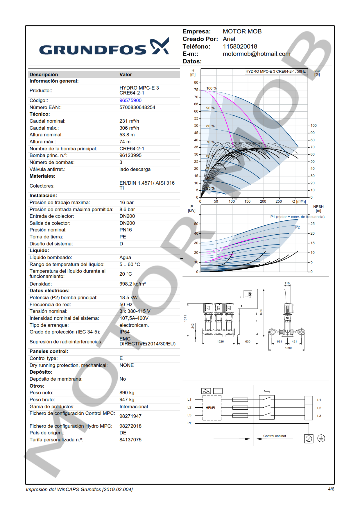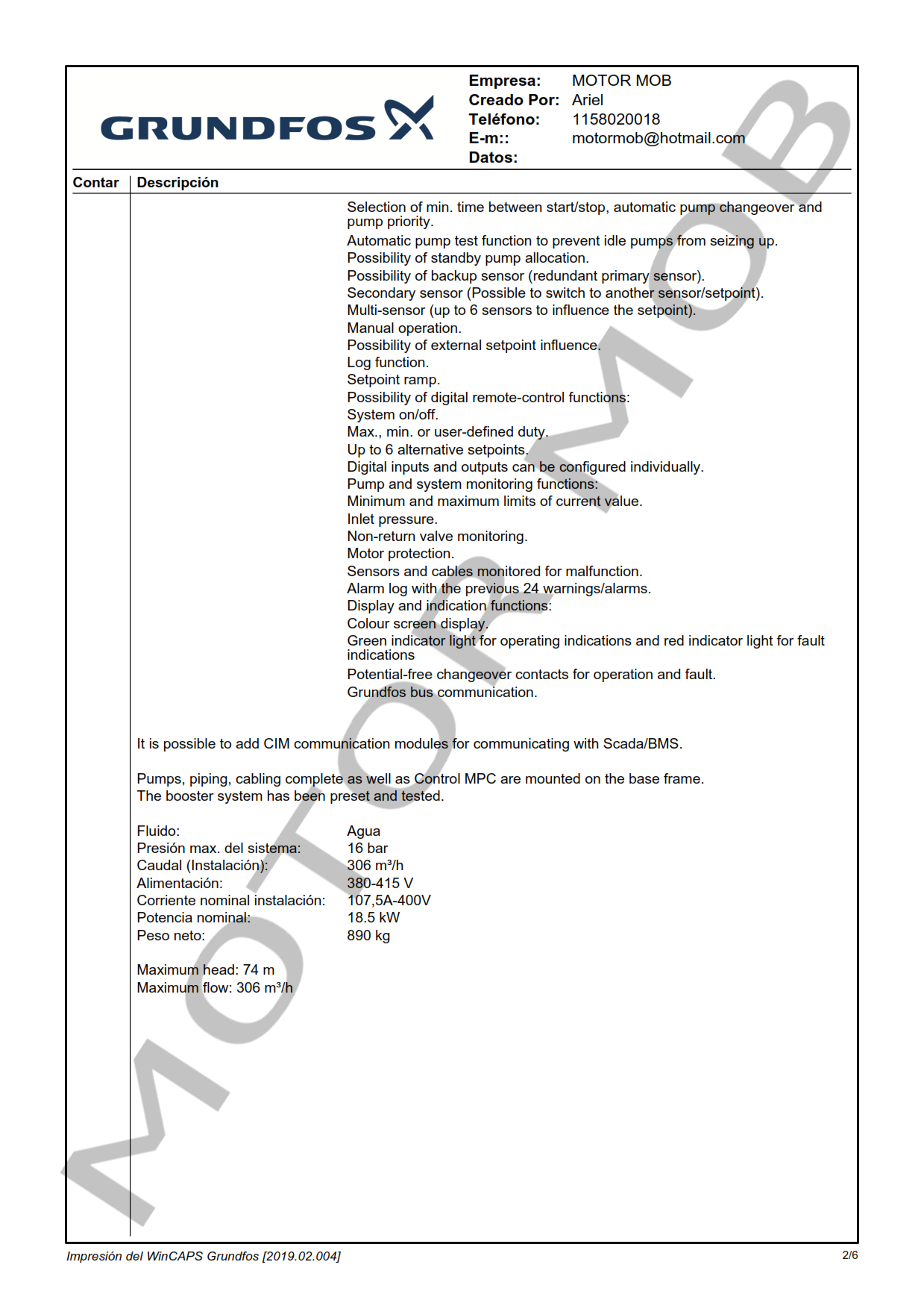 - Incluye tablero de comando y protección, funcionamiento con alternancia y cascada