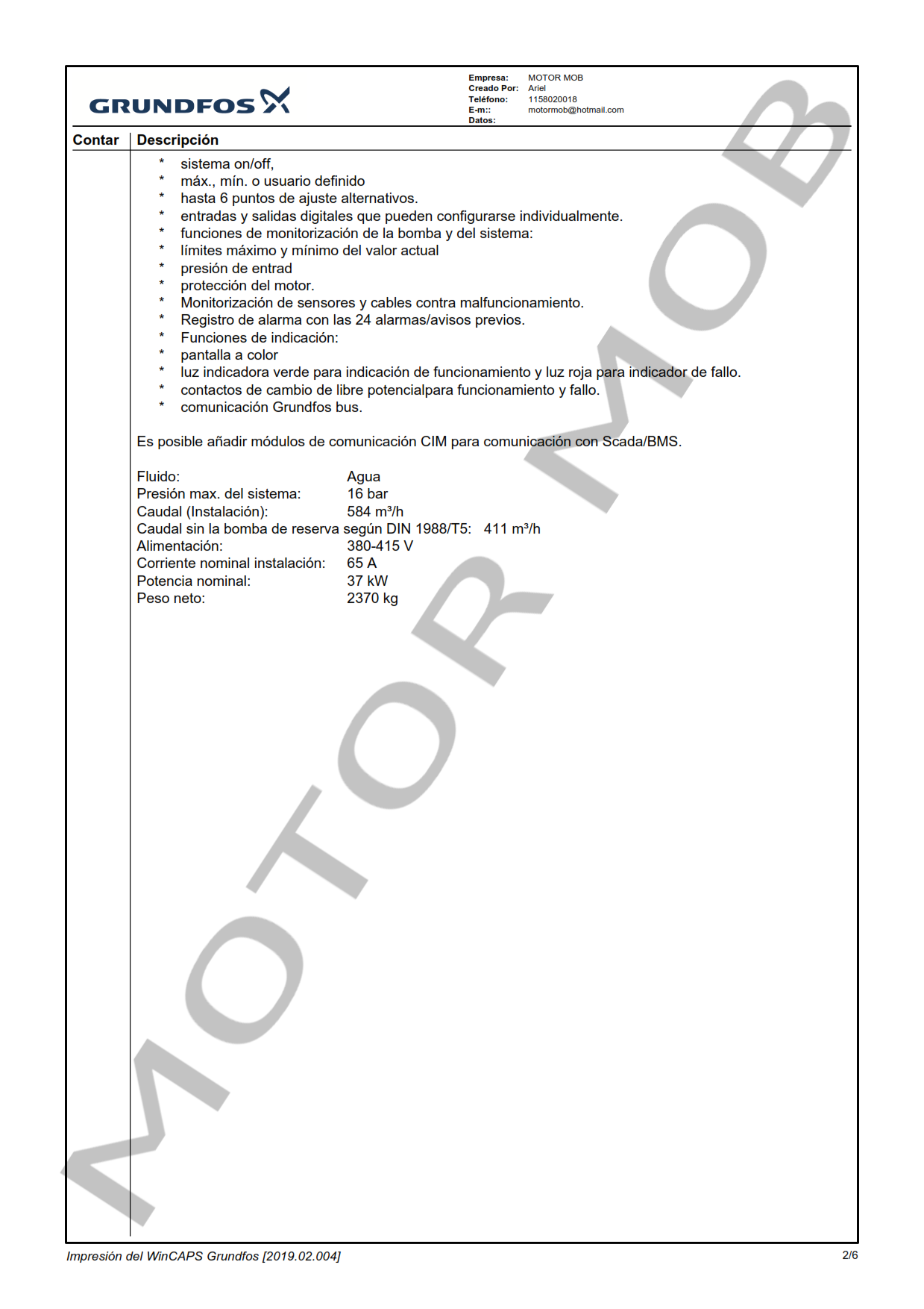 - Incluye tablero de comando y protección, funcionamiento con alternancia y cascada