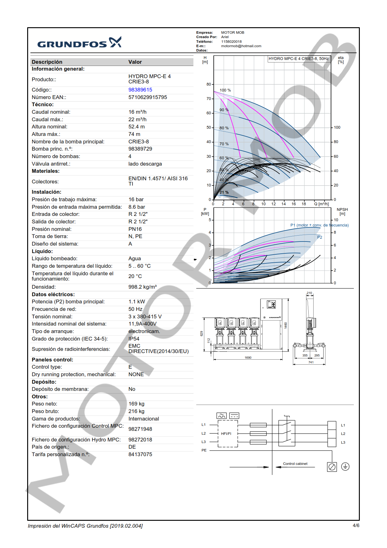EQUIPO DE PRESURIZACIÓN VARIABLE DE 4 BOMBAS GRUNDFOS HYDRO MPC-E CRE 3-8 1.1 KW TRIFASICO ARTICULO 98389615 – PRECIO