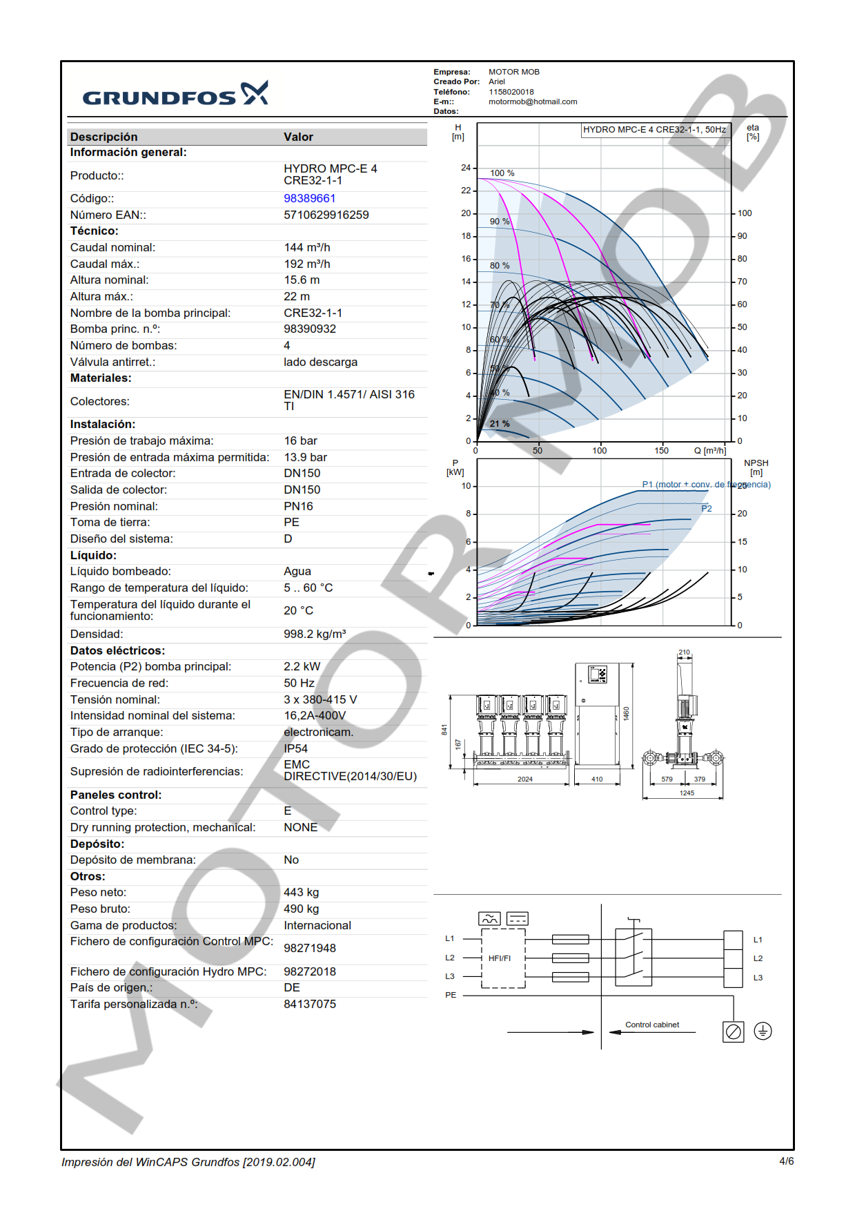 EQUIPO DE PRESURIZACIÓN VARIABLE DE 4 BOMBAS – GRUNDFOS – HYDRO MPC-E CRE 32-1-1 – 2.2 KW – TRIFASICO – ARTICULO 98389661