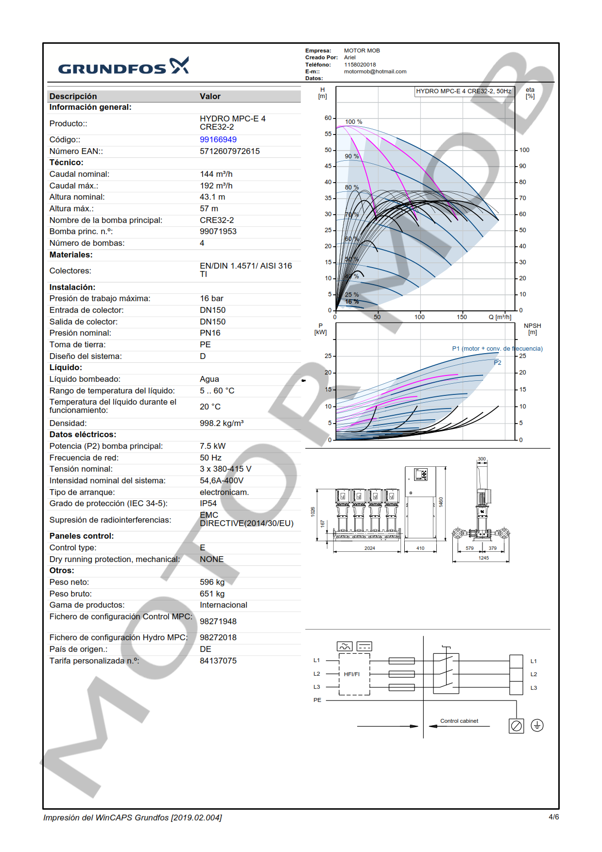 EQUIPO DE PRESURIZACIÓN VARIABLE DE 4 BOMBAS – GRUNDFOS – HYDRO MPC-E CRE 32-2 – 7.5 KW – TRIFASICO – ARTICULO 99166949