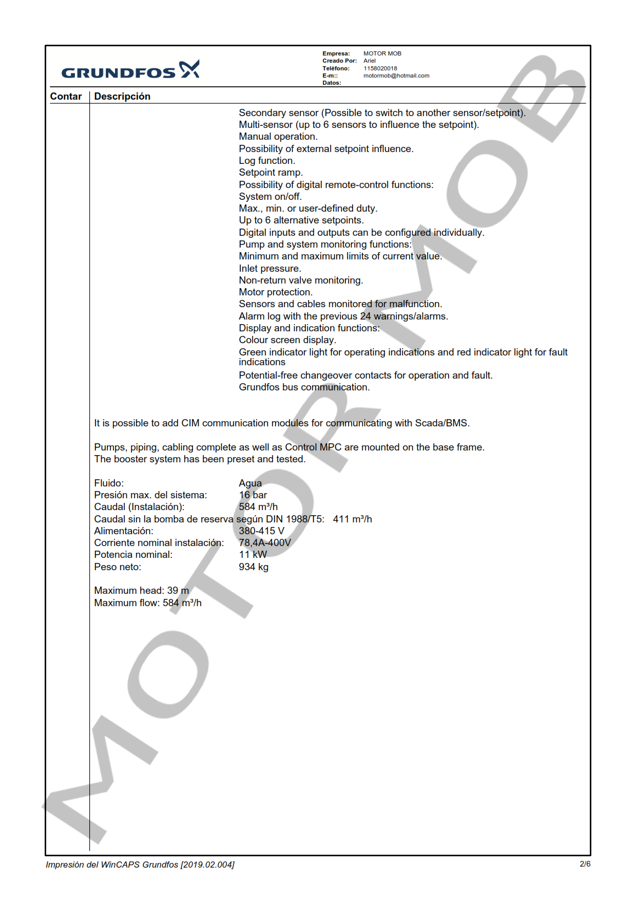 • Incluye tablero de comando y protección, funcionamiento con alternancia y cascada