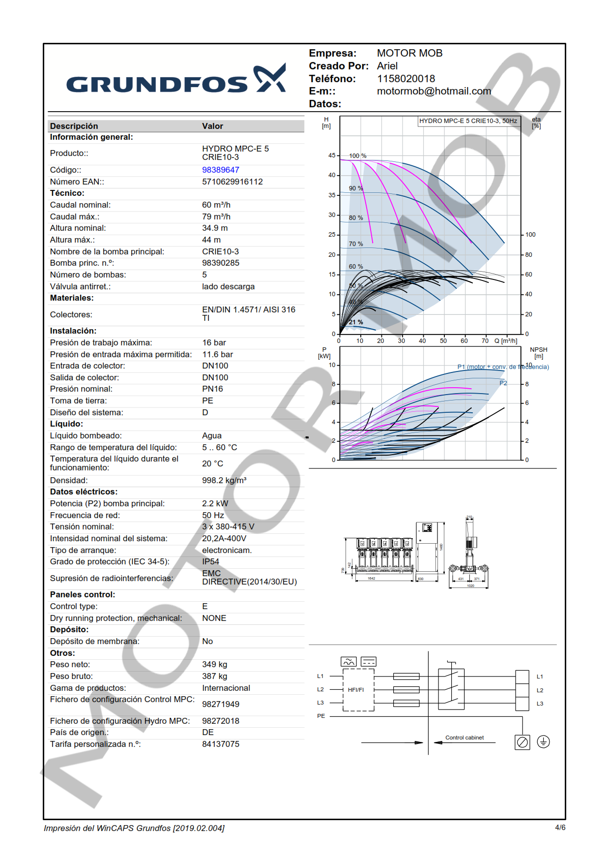 EQUIPO DE PRESURIZACIÓN VARIABLE DE 5 BOMBAS – GRUNDFOS – HYDRO MPC-E CRE 10-3 – 2.2 KW – TRIFASICO – ARTICULO 98389647