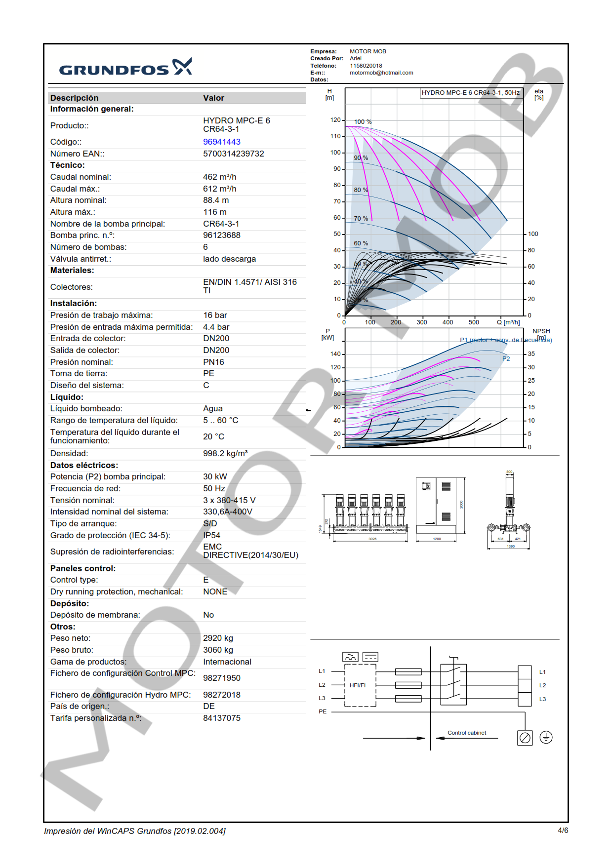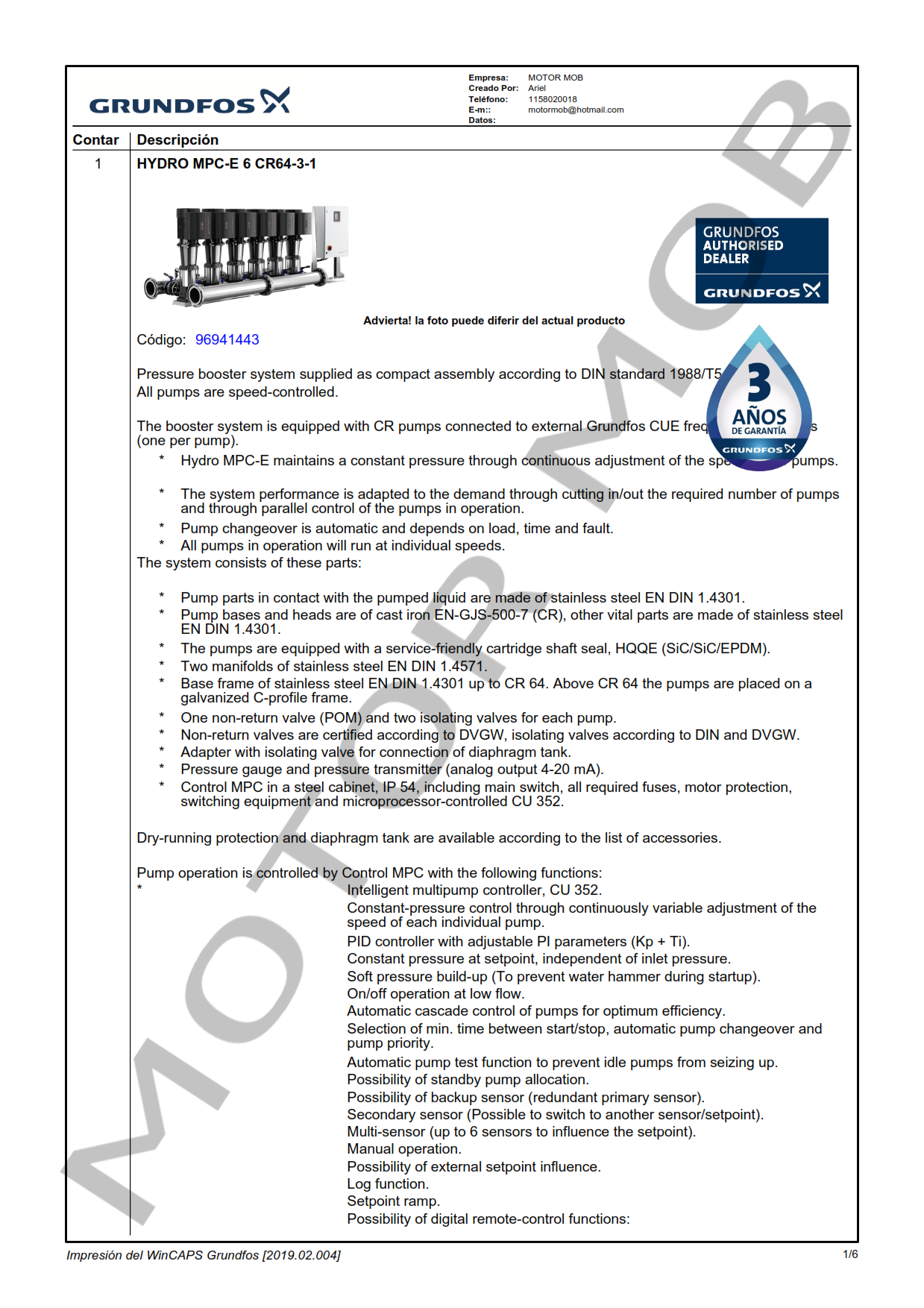 EQUIPO DE PRESURIZACIÓN VARIABLE DE 6 BOMBAS – GRUNDFOS – HYDRO MPC-E CR 64-3-1 – 30 KW – TRIFASICO – ARTICULO 96941443