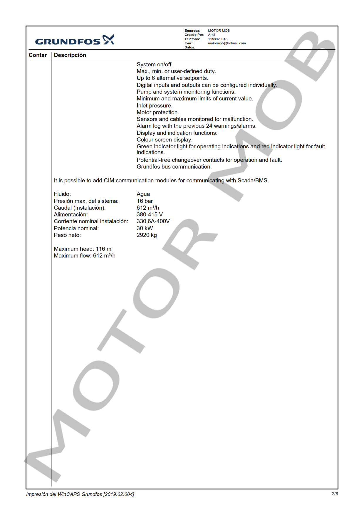 - Incluye tablero de comando y protección, funcionamiento con alternancia y cascada