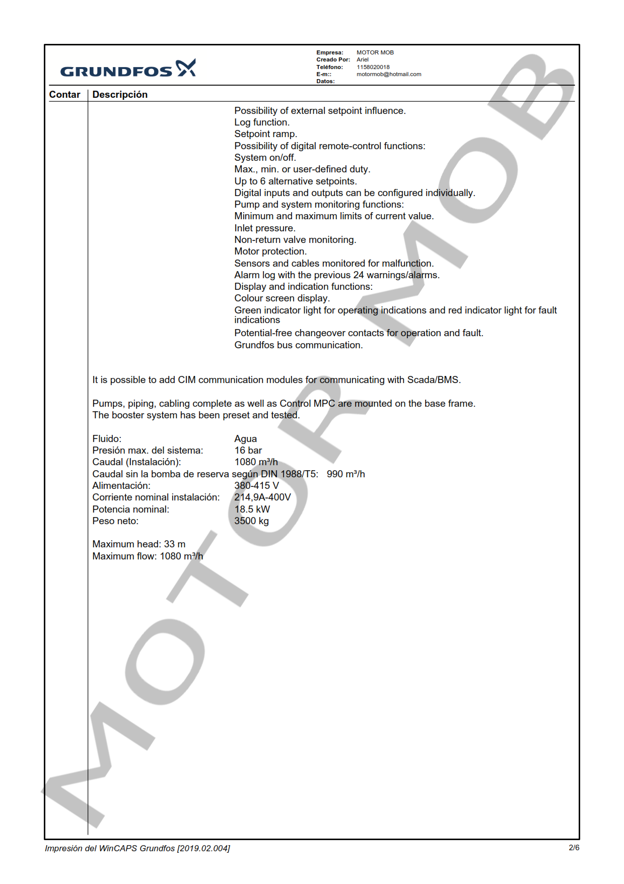 - Incluye tablero de comando y protección, funcionamiento con alternancia y cascada