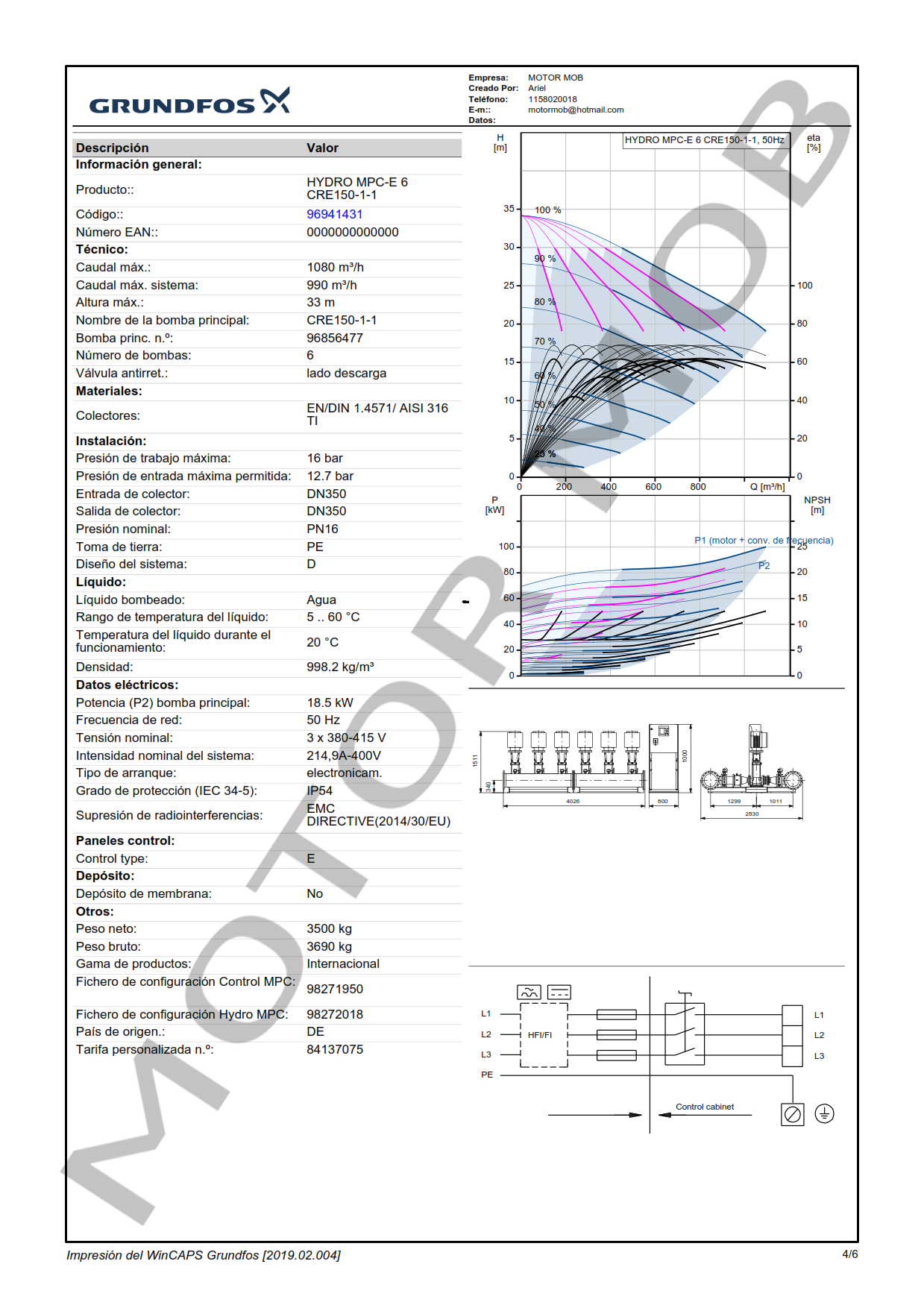 EQUIPO DE PRESURIZACIÓN VARIABLE DE 6 BOMBAS – GRUNDFOS – HYDRO MPC-E CRE 150-1-1 – 18.5 KW – TRIFASICO – ARTICULO 96941431