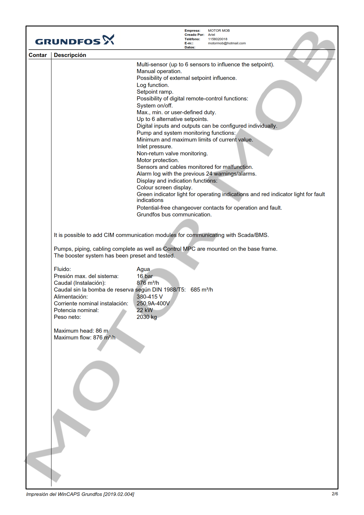 - Incluye tablero de comando y protección, funcionamiento con alternancia y cascada