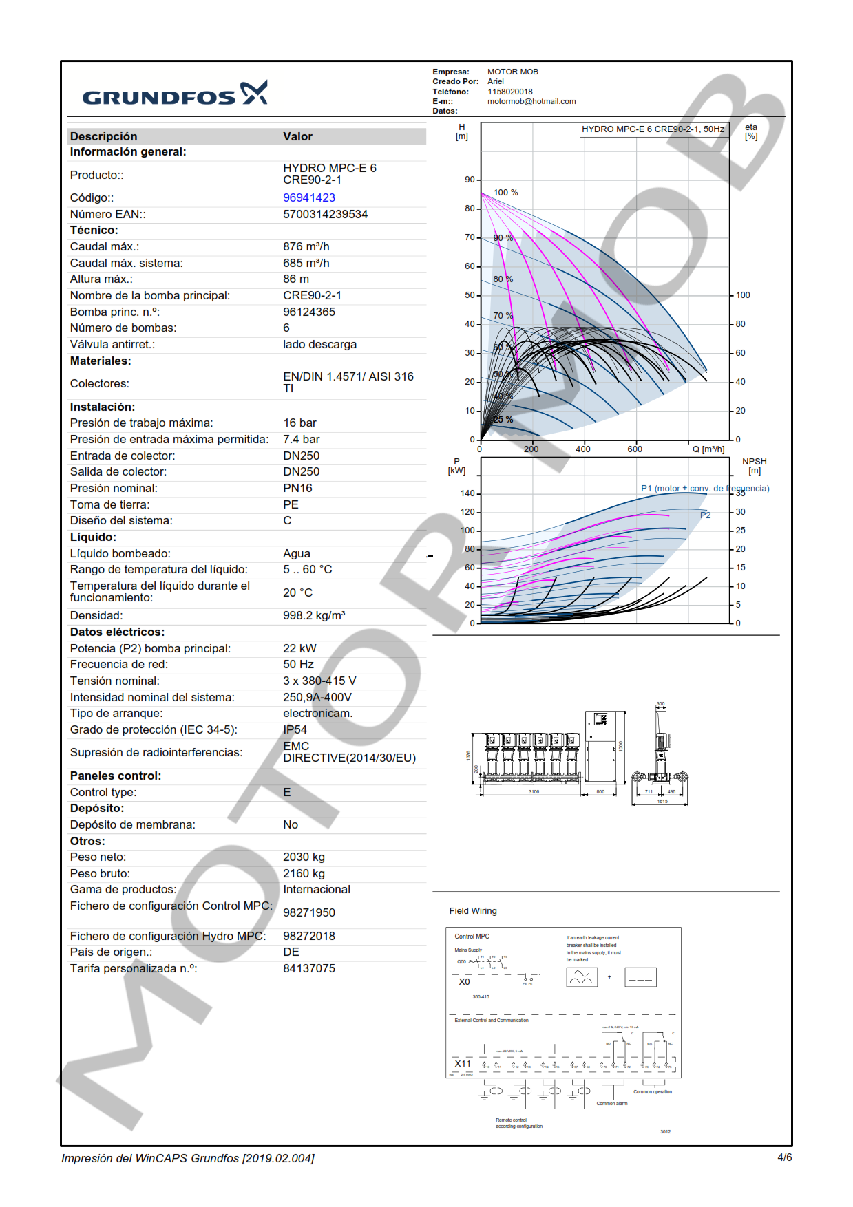 EQUIPO DE PRESURIZACIÓN VARIABLE DE 6 BOMBAS – GRUNDFOS – HYDRO MPC-E CRE 90-2-1 – 22 KW – TRIFASICO – ARTICULO 96941423