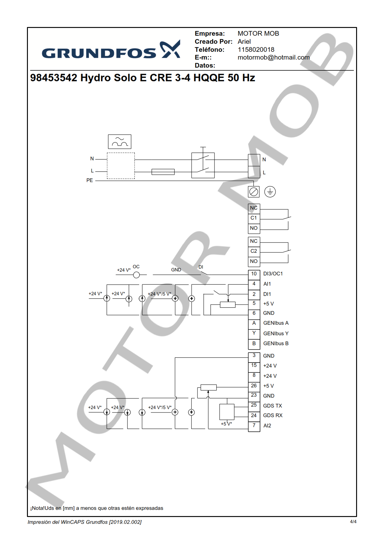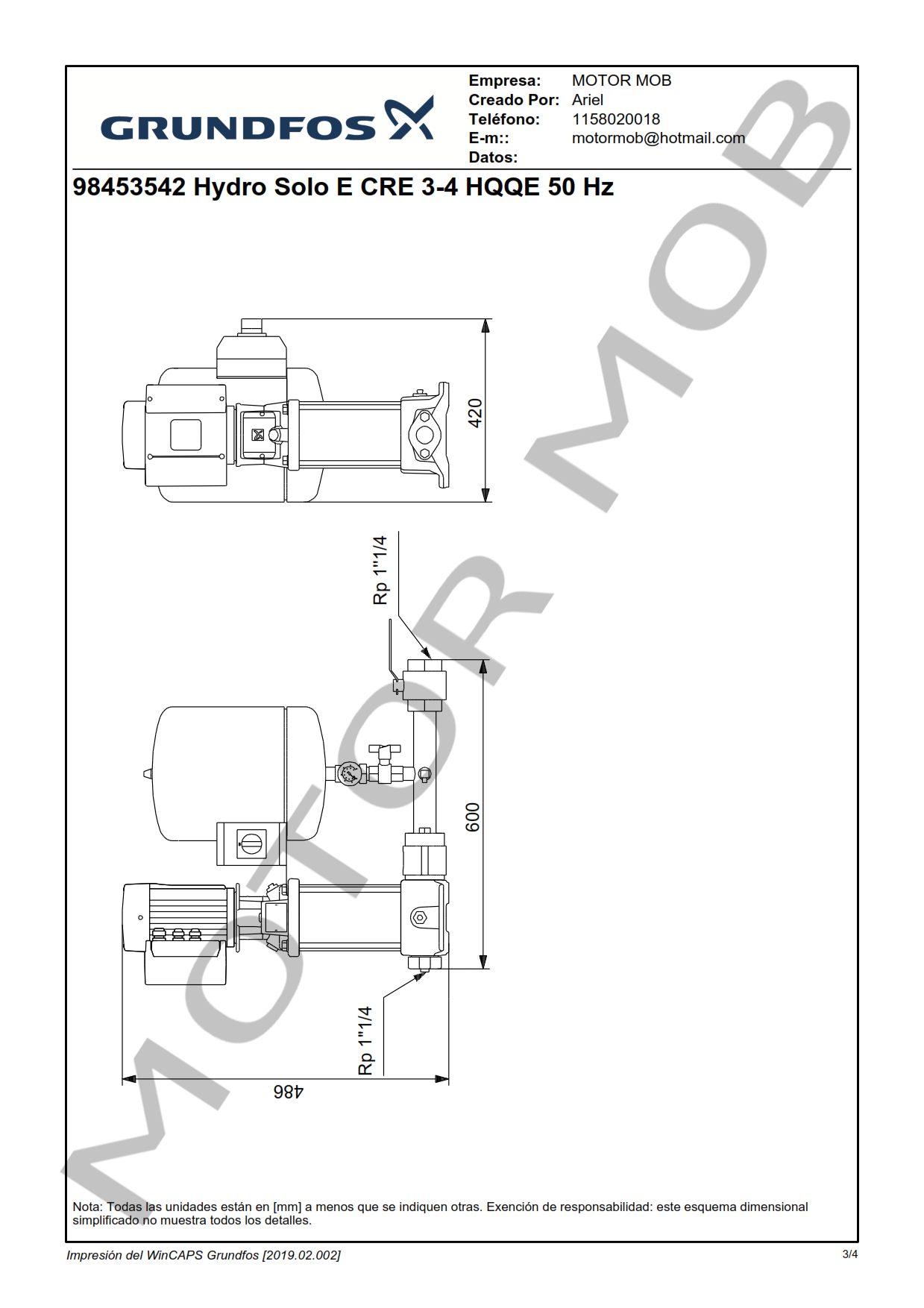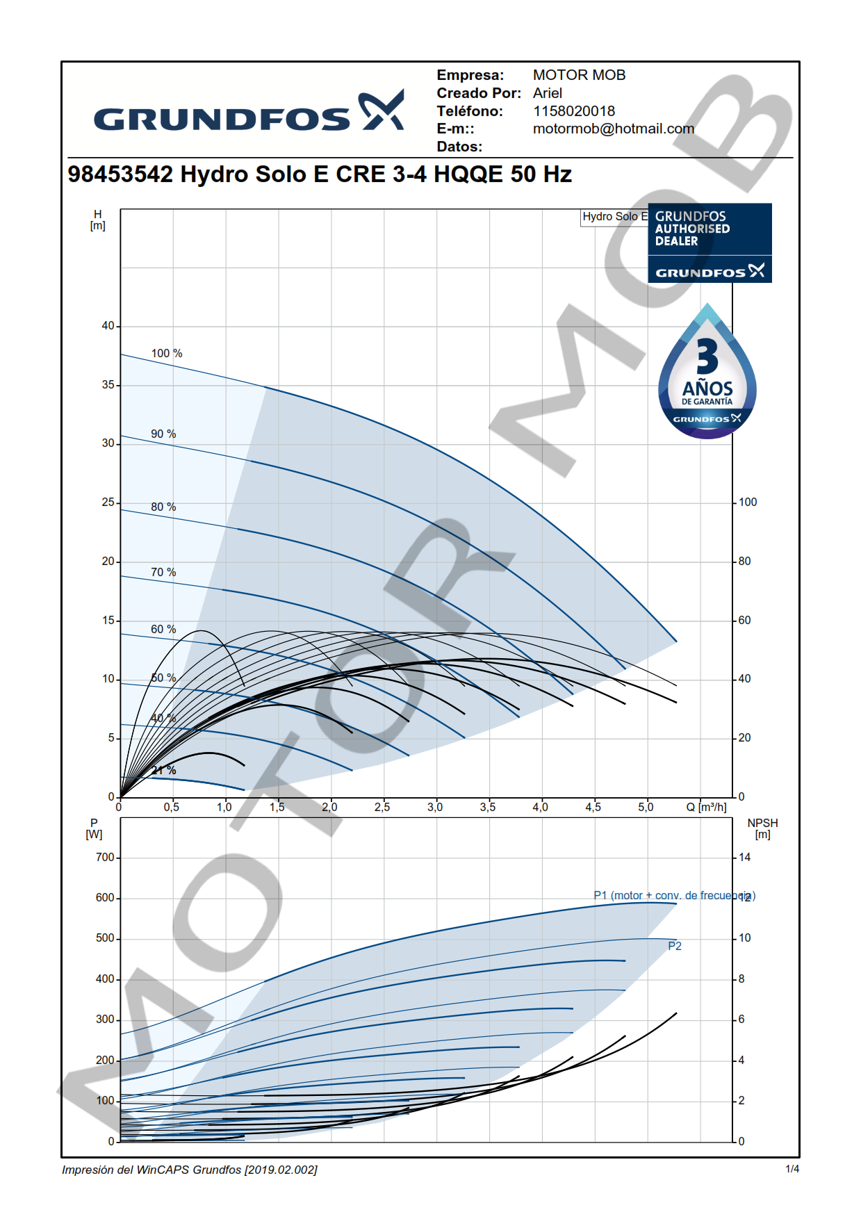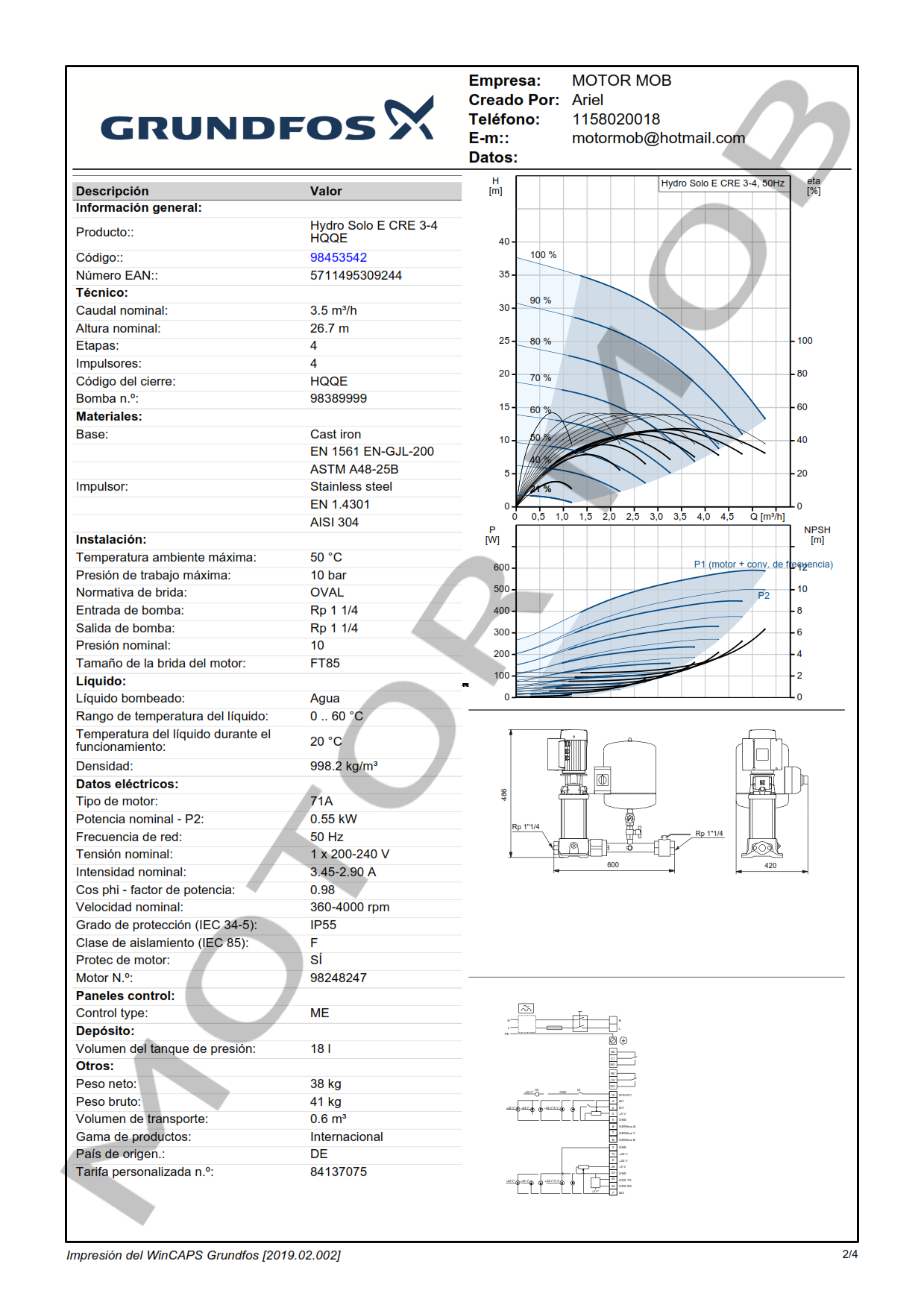 EQUIPO PRESURIZADOR COMPACTO DE UNA BOMBA CON VELOCIDAD VARIABLE – GRUNDFOS – HYDRO SOLO E CRE 3-4 0.55 KW – MONOFASICO – ARTICULO 98453542