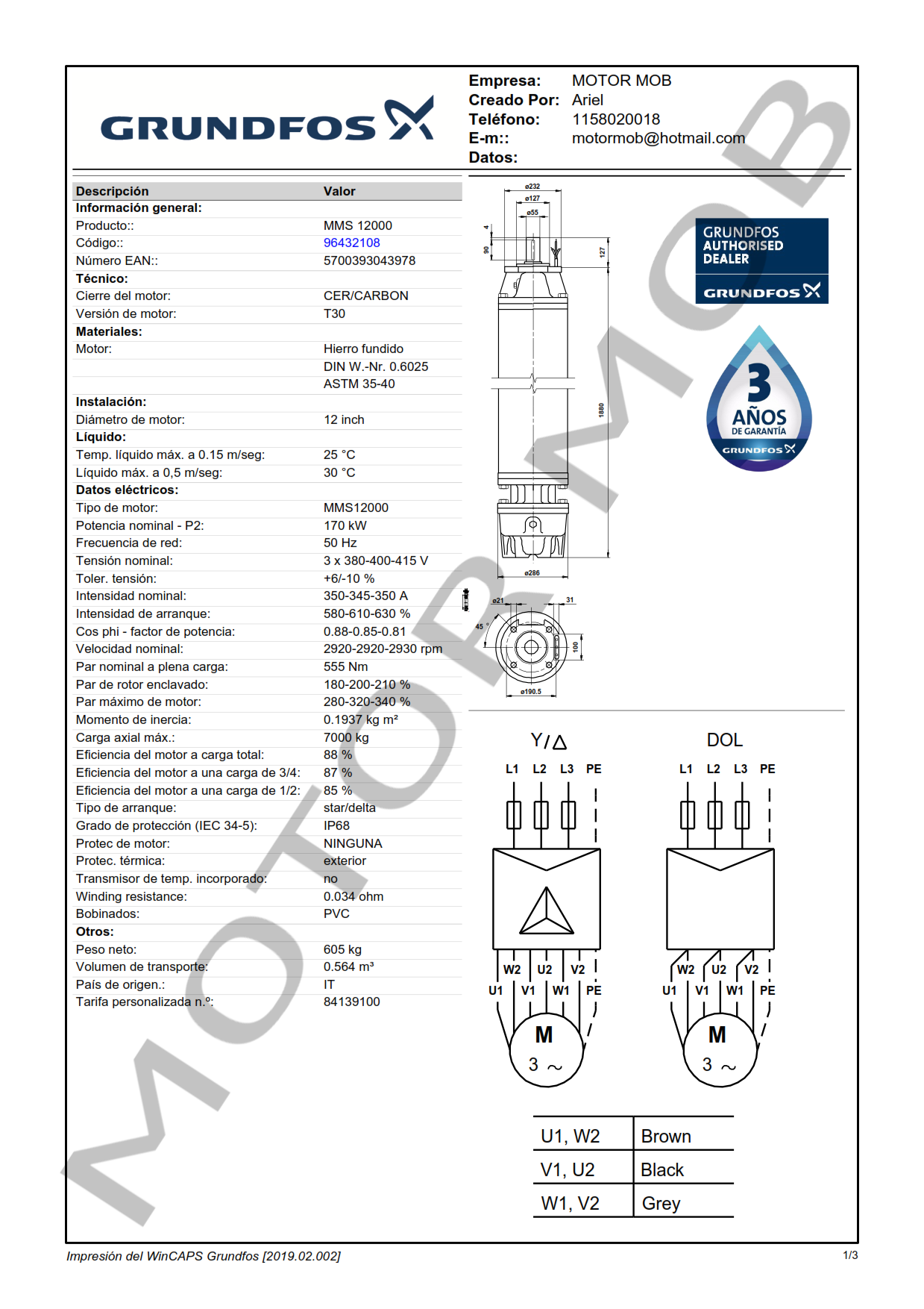 MOTOR SUMERGIBLE REBOBINABLE DE 12″ GRUNDFOS MMS 12000 225 HP TRIFASICO DELTA/ESTRELLA ARTICULO 96432108 – PRECIO