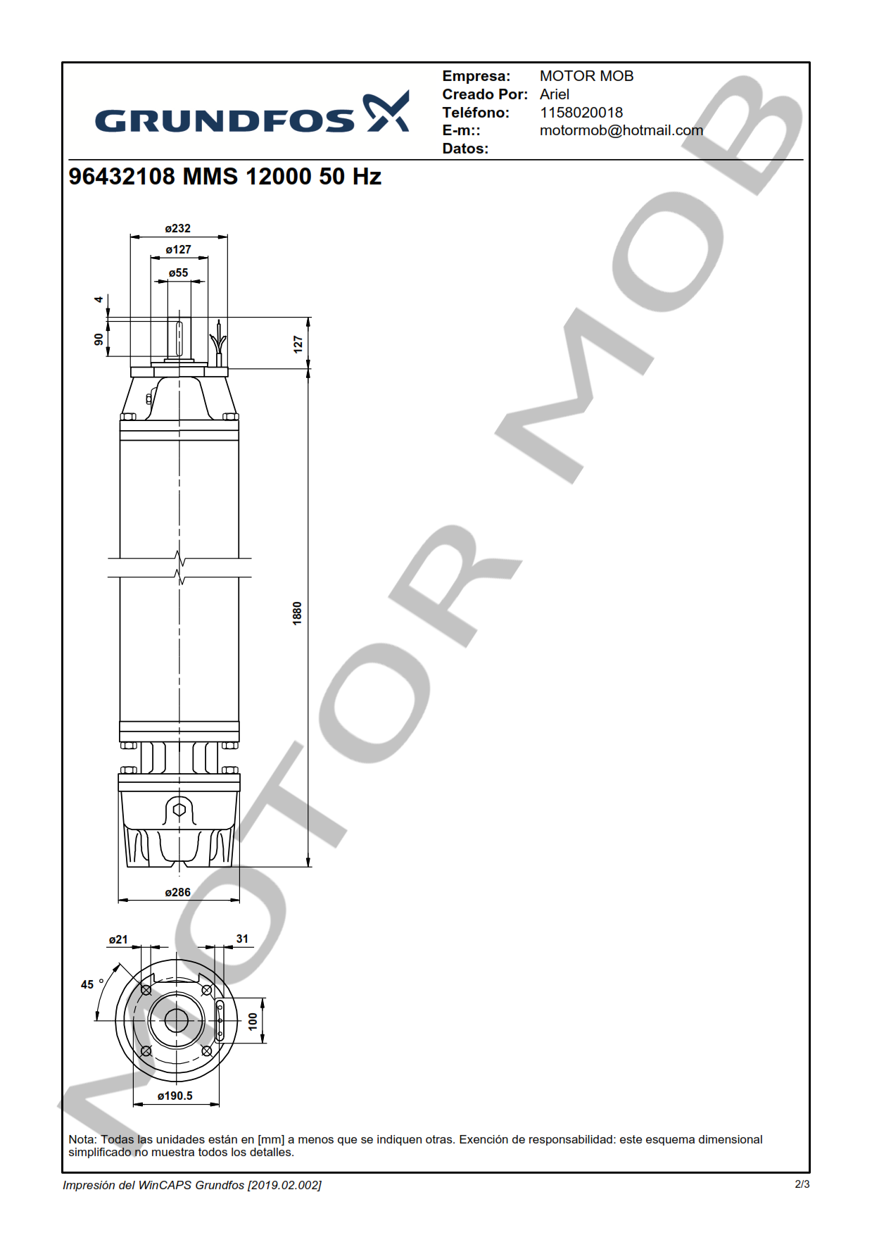 MOTOR SUMERGIBLE REBOBINABLE DE 12″ – GRUNDFOS – MMS 12000 – 225 HP – TRIFASICO – ARTICULO 96432108